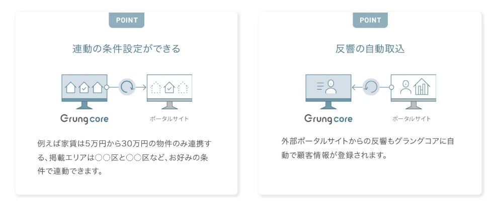 ポータルサイト、HPへ物件連動が可能です。
