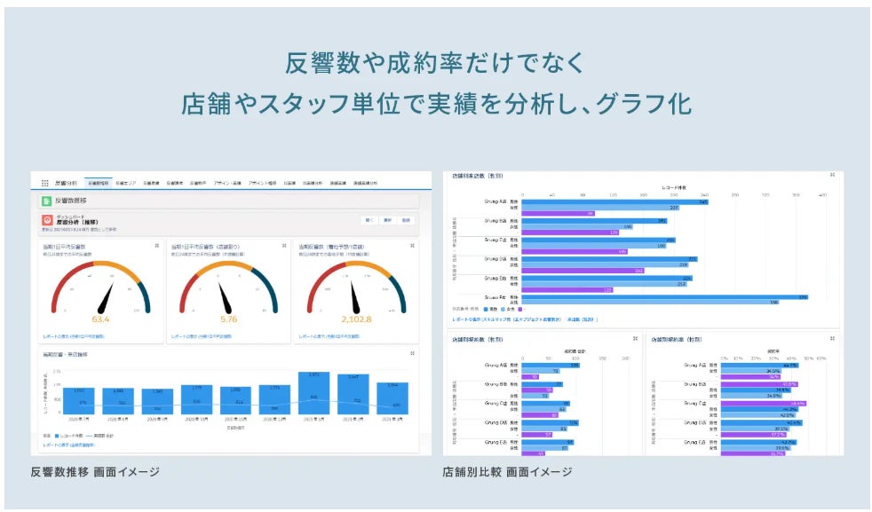 経営者が特に知りたい情報を事細かに知ることができ、よりスピーディーな経営判断を可能にします。現場マネージャーも店舗スタッフの状況を掴み、より正確なマネジメントで売上アップを目指せます。営業スタッフも自身の業績を日々意識し、他スタッフとの競争心を発揮させます。