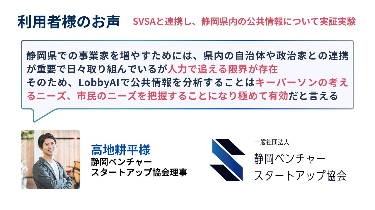 LobbyAIは、「誰もが政策を使いこなせる社会」を目指し、今後も全国の企業・行政や政治家との連携によるプロダクトの改良と、現場起点の社会実装を進めてまいります。今回のイベントを皮切りに、地域・業種を問わず、政策渉外の民主化とテクノロジーによる公共領域の変革に取り組んでまいります。