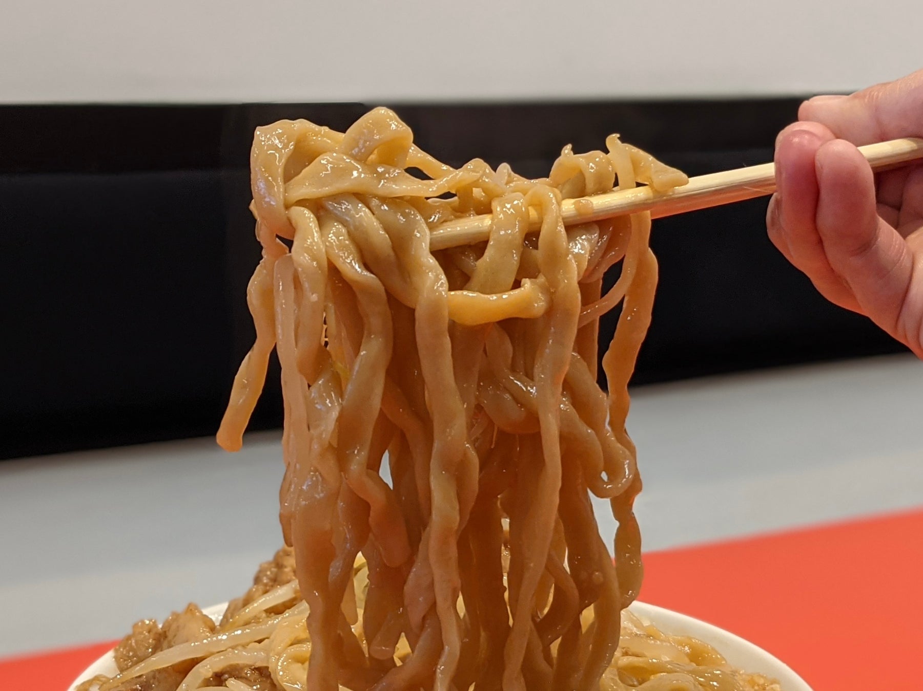 今回のリニューアルでは、スープの進化にあわせて、麺とカエシも全面的に見直しました。麺は従来よりも厚みを増した「ワシワシ系」に。力強い食感を残しつつ、モチモチ感との両立を図ることで、微乳化スープとの一体感を高めました。