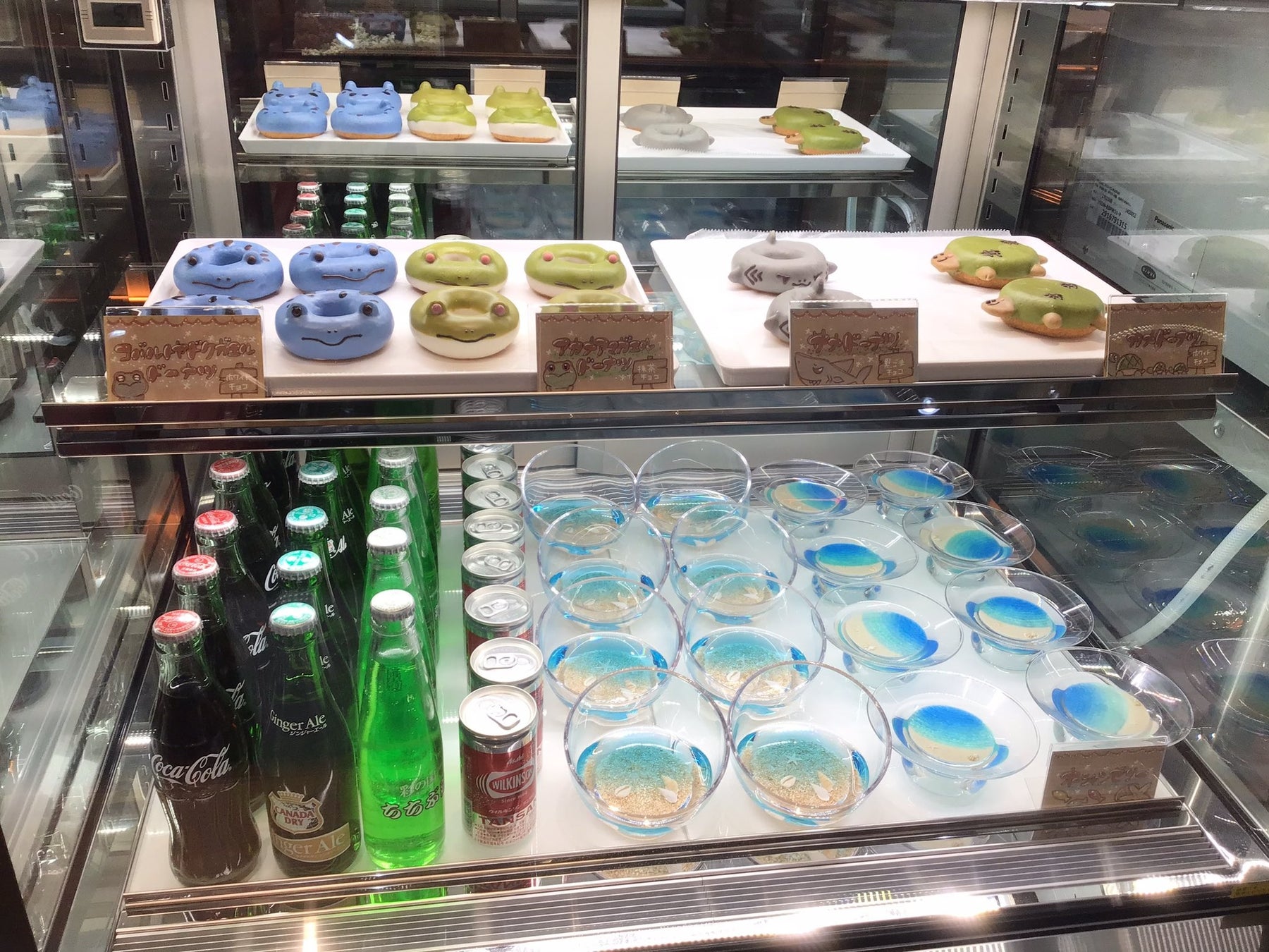 5階『アクアリウムカフェ』では話題の「イクミママのどうぶつドーナツ!」や「いきものクッキー」とのコラボスイーツを提供。アクアリウムを眺めながらスイーツが楽しめる