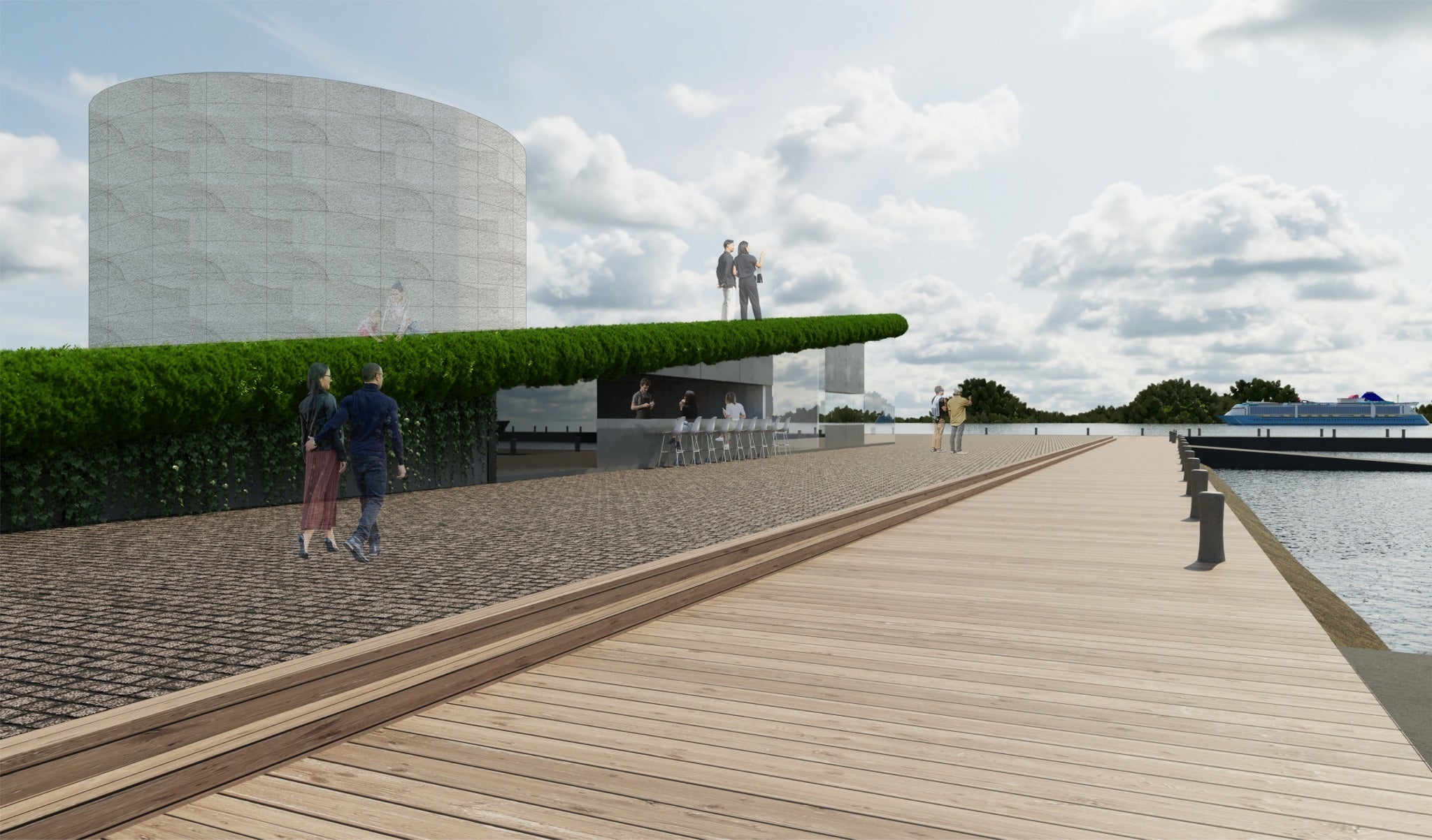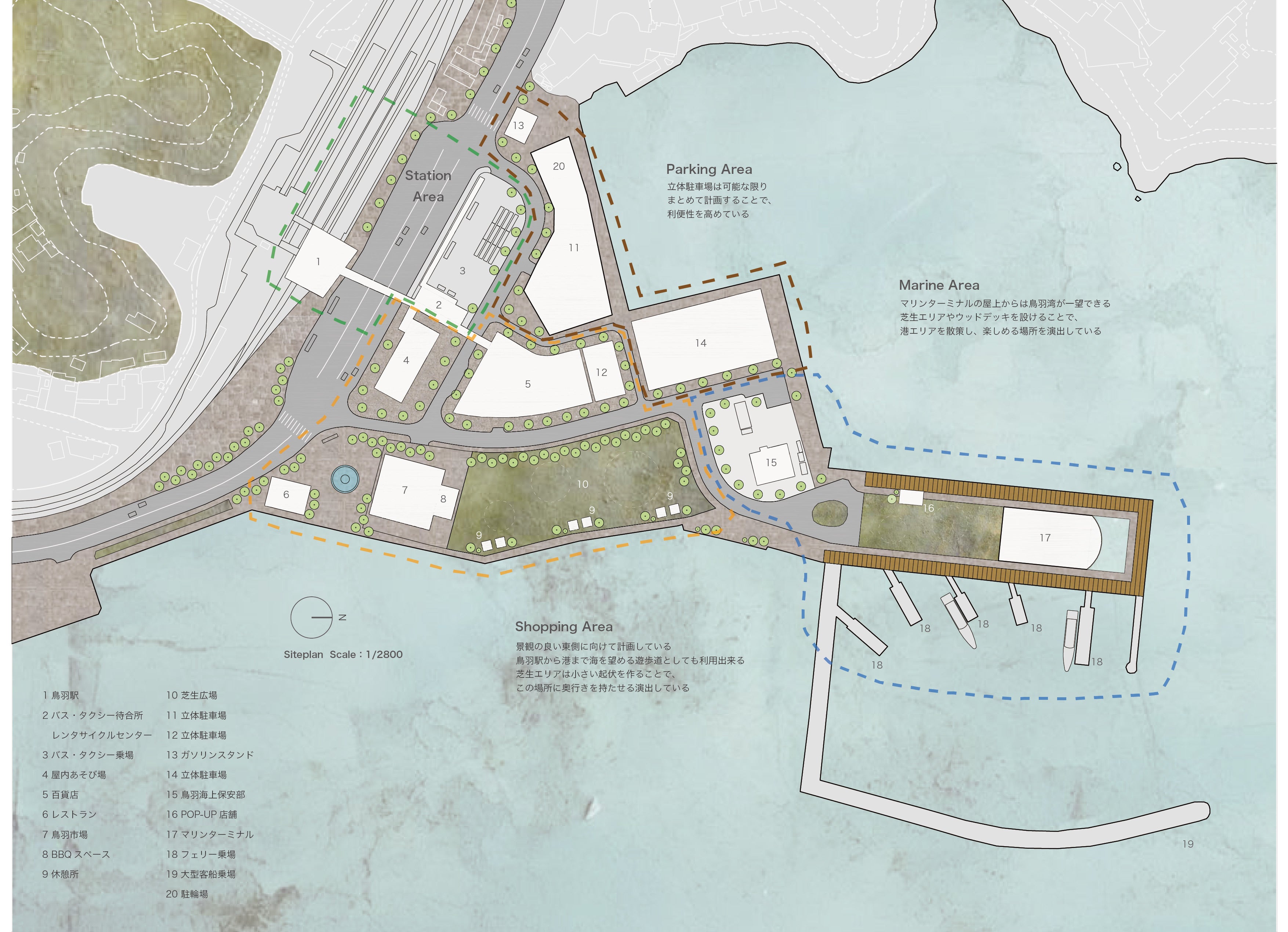 本プロジェクトへの参画にあたり、HYLEN Architects代表の尾澤は現地での視察やヒアリングを実施。鳥羽に息づく歴史的価値と美しい景観を中心に、駅から港への導線を描き、立ち止まり、語らい、また歩き出す——そんな人々のリズムをデザインしました。