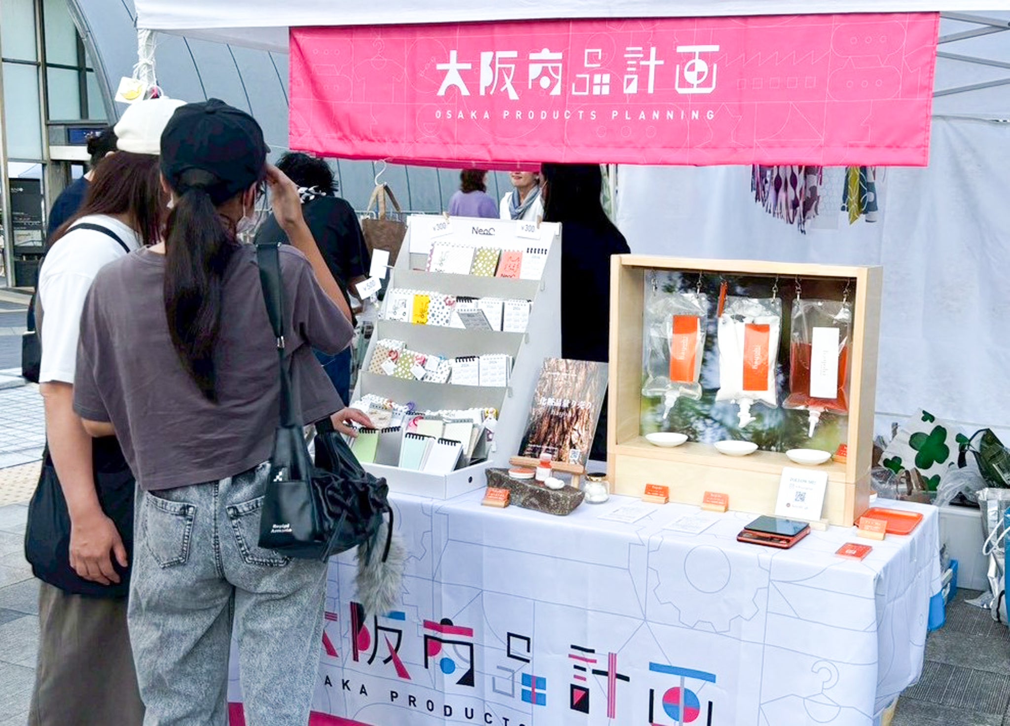 2025年10月には、大阪・中之島公園にて開催の「北浜蚤の市」で使用する化粧品量り売り什器を制作しました。