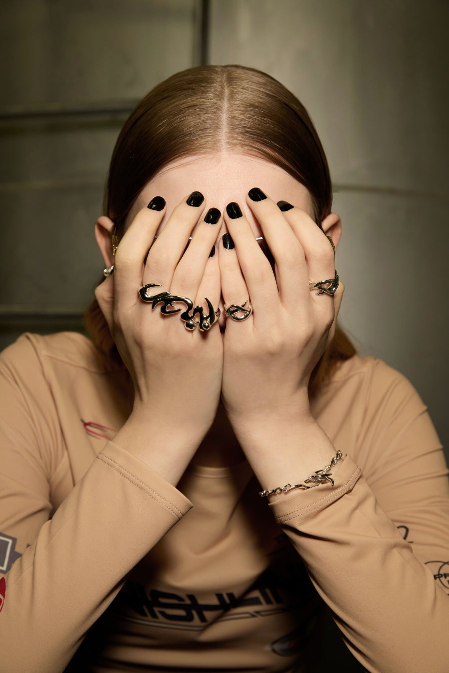Soierie 25 A/W Collectionは「Cyber punk」をテーマに、良い意味でスタイリングに違和感を与えるCollectionを展開。コスチュームジュエリーならではのデザイン性とボリューム感を活かし、シンプルになりやすい秋冬の装いにエッジを与えるアクセサリーをProductしました。
