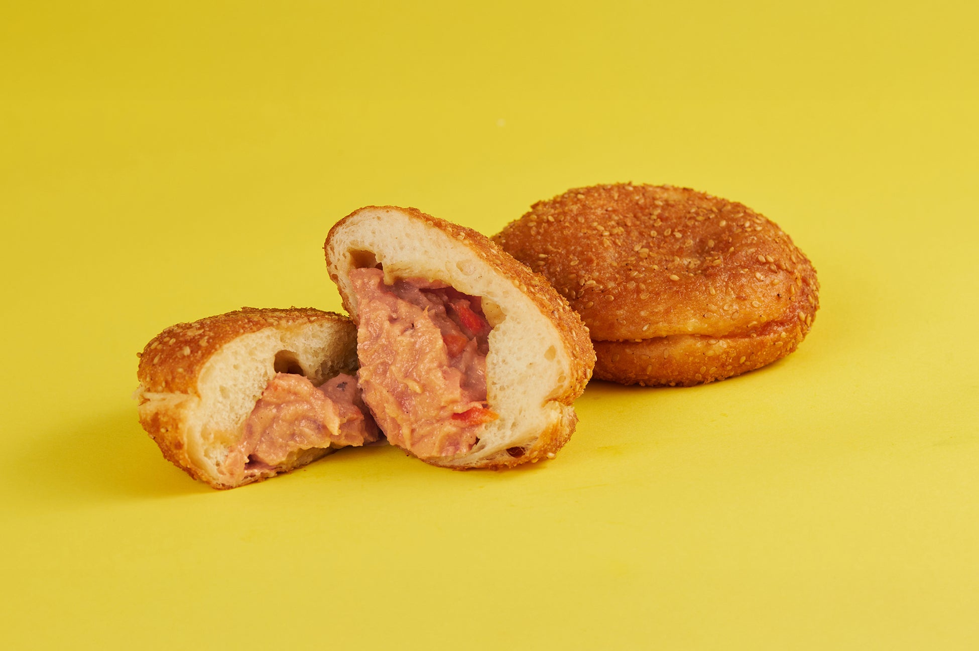 見た目はおにぎりそっくり。中には自家製のツナポテトがぎっしりと詰まり、ごまの香ばしさが引き立ちます。