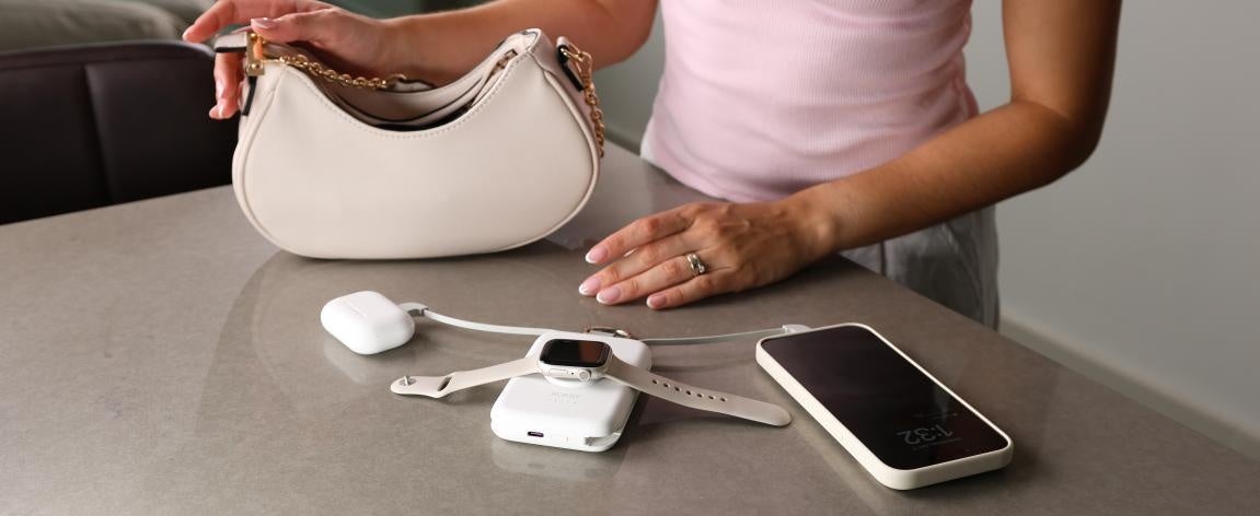 Apple Watch専用の超小型モデル。キーホルダーに取り付けられるほどコンパクトで、約1.5時間でApple Watchをフル充電。旅行や外出先でも手軽に充電できます。