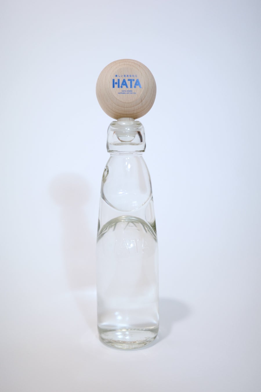 また、HATA PREMIUMには専用の木製玉押し栓があります。「ただラムネを開栓するだけの道具にしたくない」という思いから、手にフィットする形状、開栓に最適な玉押し部分の長さや直径を選定し試作を重ね、最終的に木材を一つ一つ削り出して作る玉押し栓が完成。