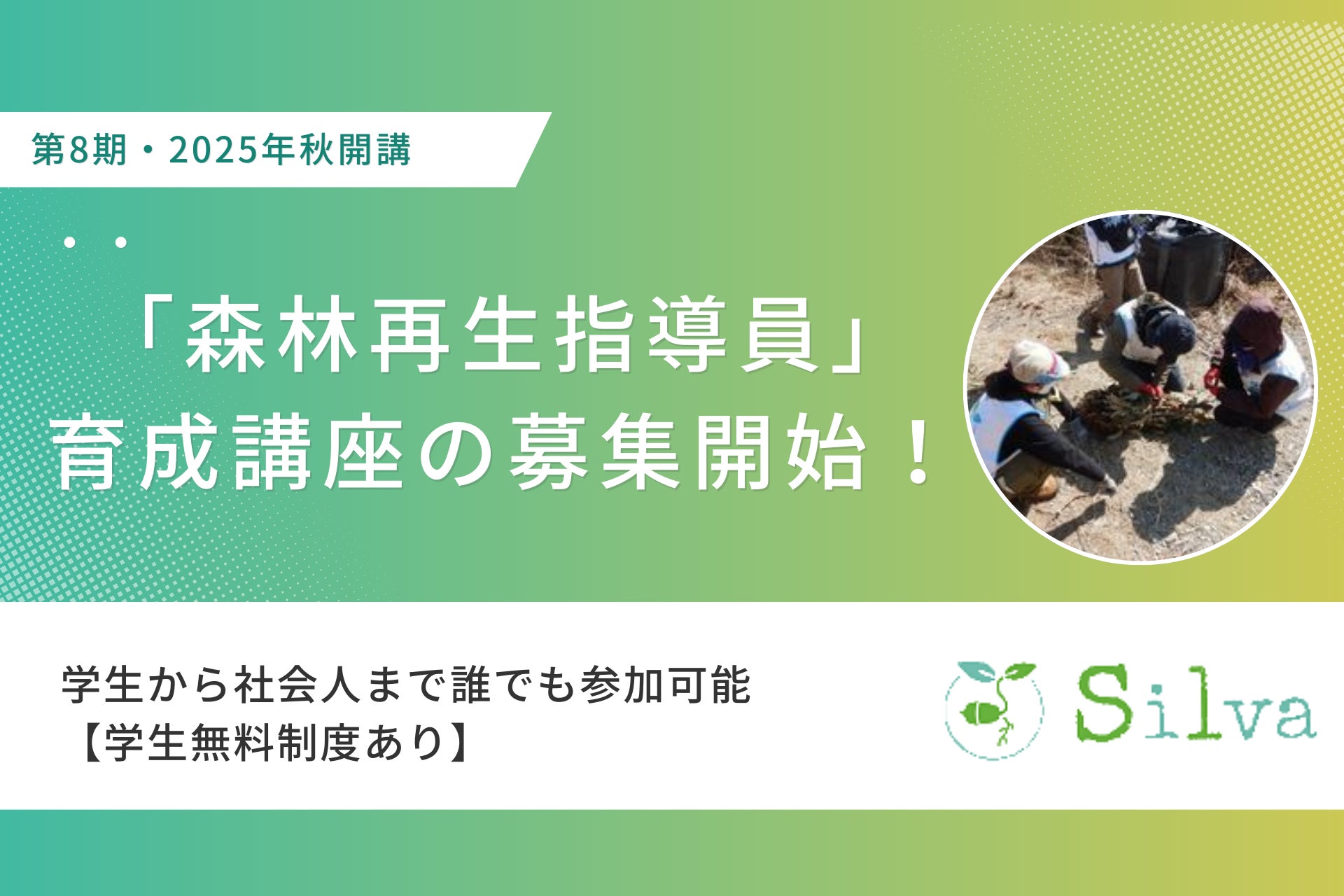 次世代に続く持続可能な緑の復元を目指し森づくりを行う非営利型一般社団法人Silva(シルワ)は、「森林再生指導員」の第8期講座について、募集を開始したことをお知らせします。