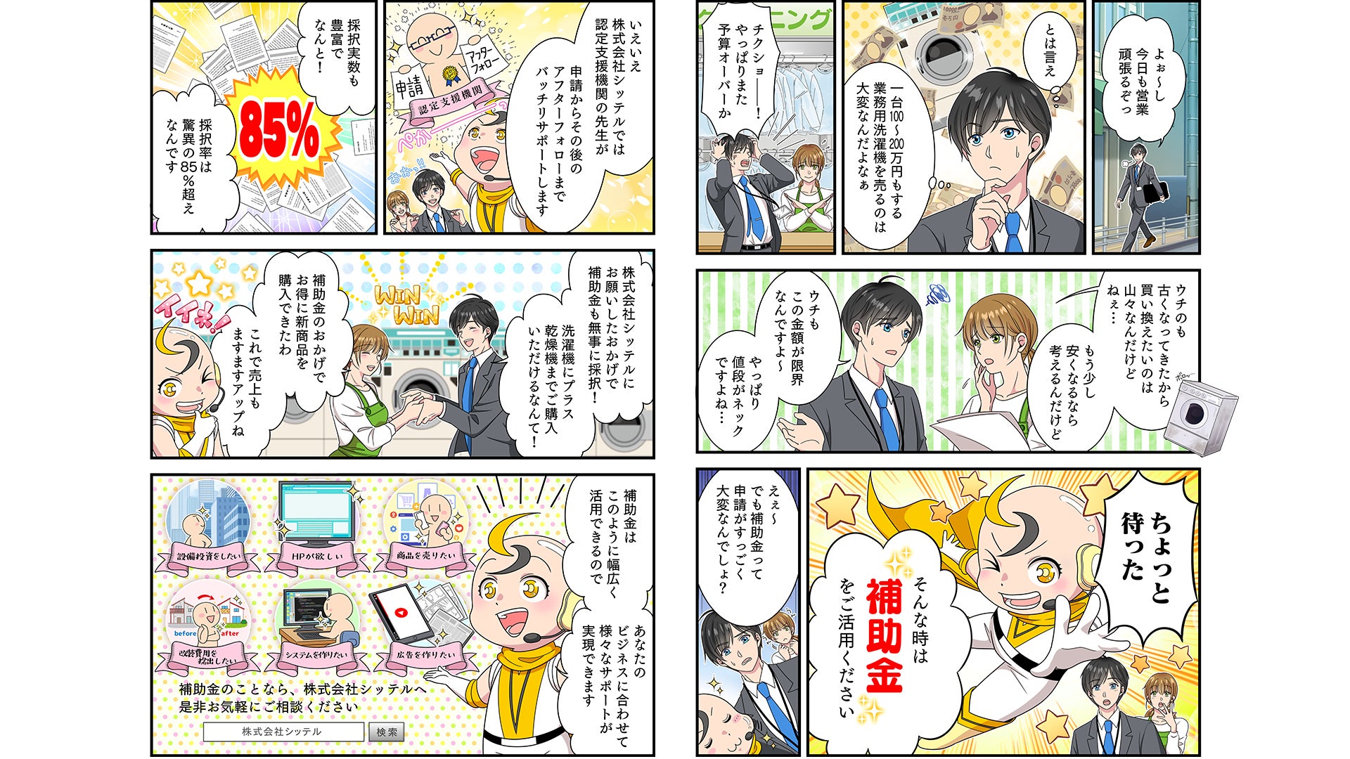 両社の連携により、補助金申請で確保した予算から、高品質なイラスト広告制作を制作が可能で好評をいただいています。