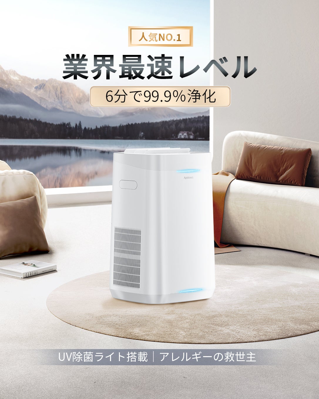 くしゃみや鼻水、目のかゆみで、春の陽気を楽しむ余裕がない…そんな悩みを、Apolnusがわずか6分で99.9%解決します。つらい症状から解放され、家族みんなが安心して深呼吸できる空間を作ります。