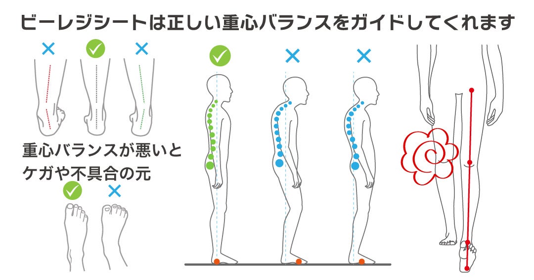 ビーレジシートは、身体から放出される超微弱な光(バイオフォトン)を受け止め、体内の情報伝達をサポートする製品です。インソールの下に貼るだけの簡単装着で、重心バランスをガイドし、身体本来の機能を引き出します。