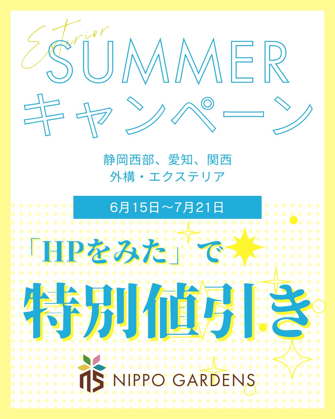 静岡県浜松市に本社を構える日豊ガーデンズ株式会社は、この度、外構・エクステリアのsummerキャンペーンを開催いたします!!