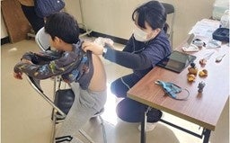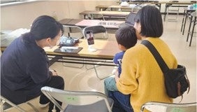 【看護師によるデータ取得や遠隔の小児科医によるオンライン診療(スマートフォンでのビデオ通話)】(八丈町保健福祉センターでの様子)