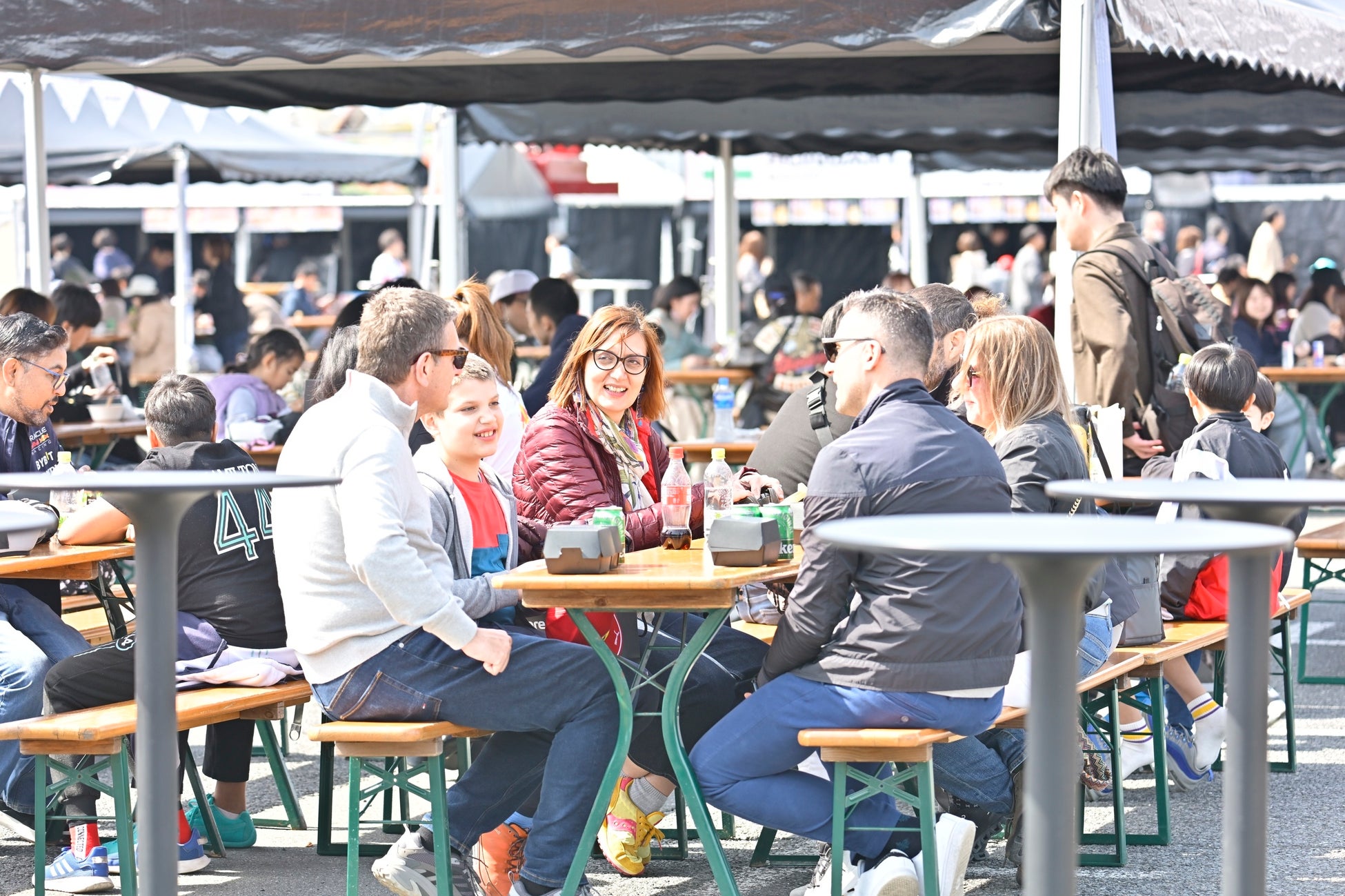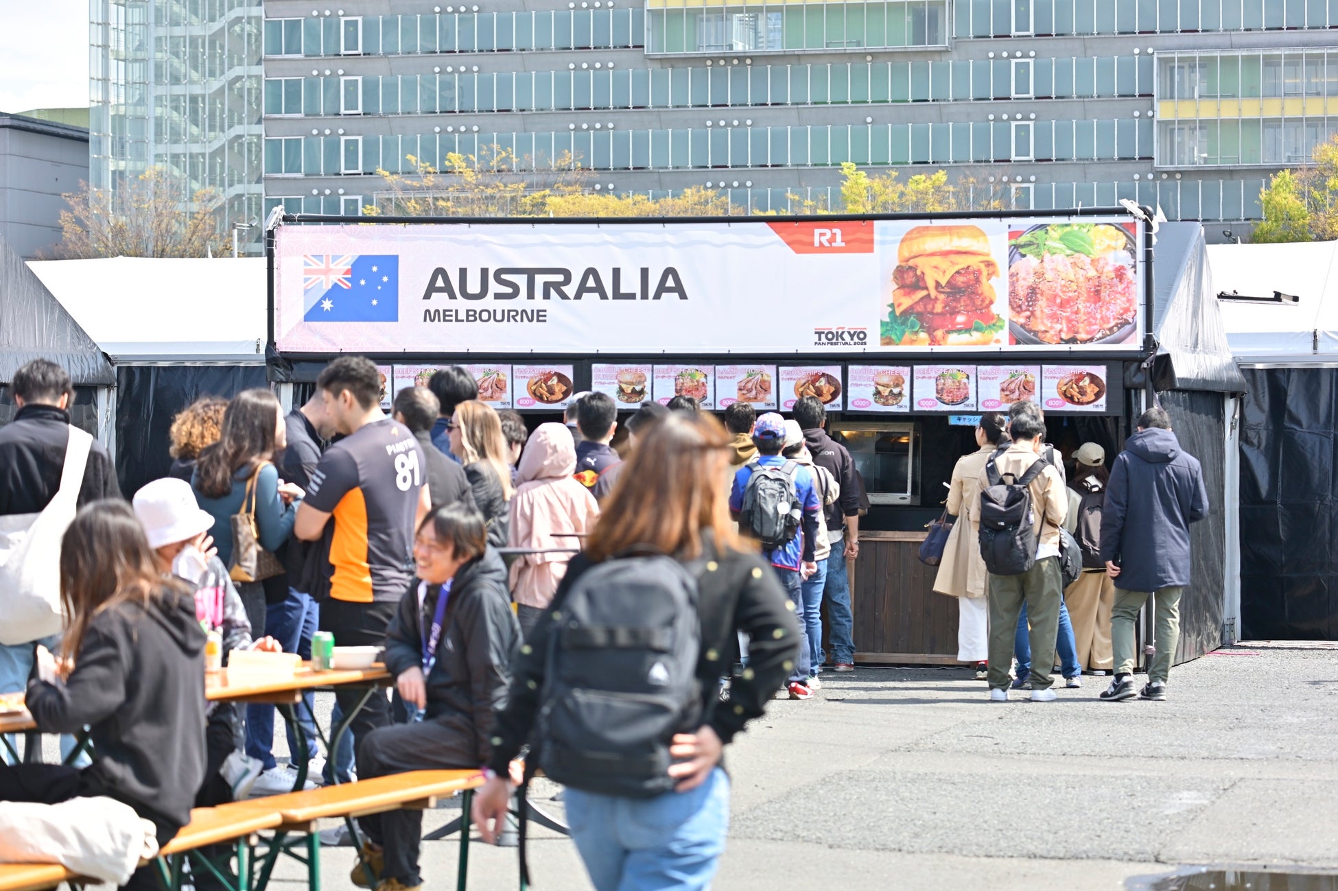 キッチンカー15店舗がずらりと並ぶ飲食ゾーンには、F1開催国から選りすぐったグルメが大集合。日本のファストフードをはじめ、スペインやアメリカ、オーストラリア、シンガポールなどの料理が並び、ハイネケンなどのビールを手に食を楽しむ光景があちこちで見られました。