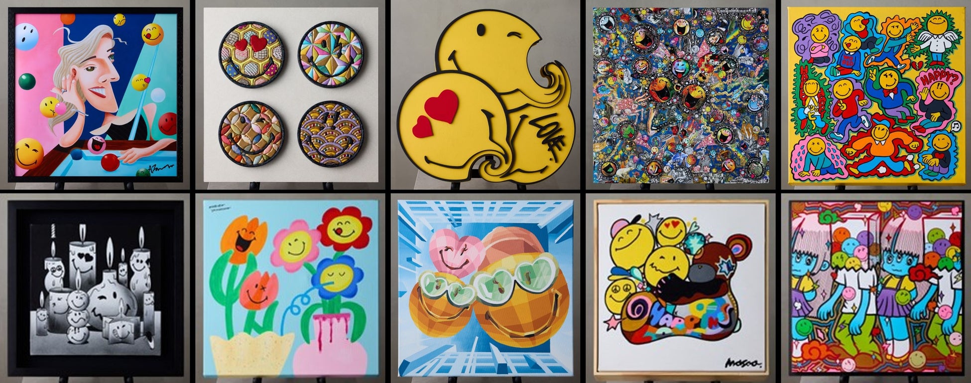 会場には、日本を拠点に活動する気鋭のアーティスト10名が集い、SmileyWorldの掲げるビジュアルアイコンやブランドコンセプトをもとに、それぞれの視点から「感情」を表現したオリジナル作品を発表。絵画、イラスト、グラフィックなど多彩な手法による作品が空間を彩りました。