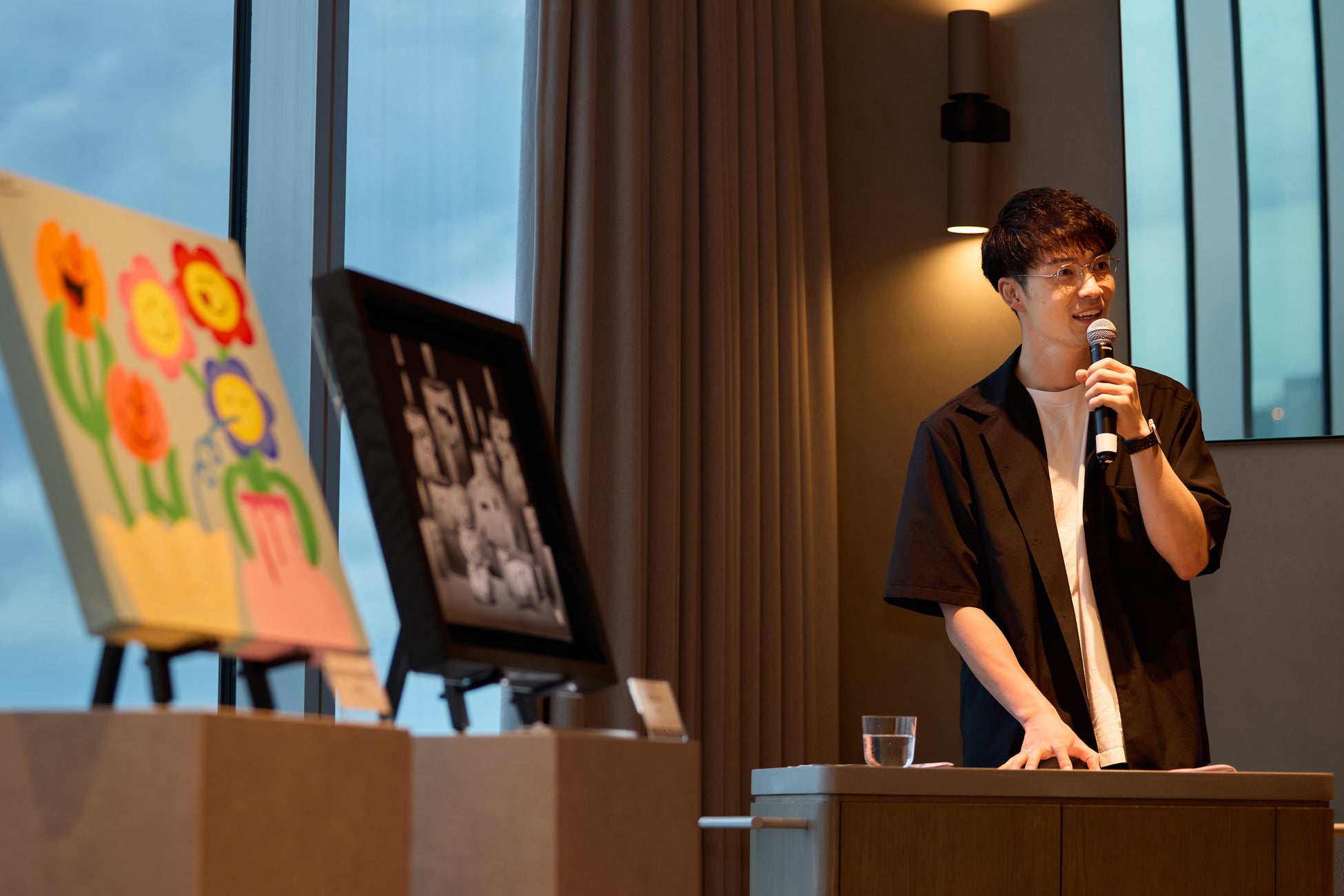 感情テーマを独自に解釈し、絵画、イラスト、グラフィックなどの平面作品として表現しました。『100日後に死ぬワニ』の作者・きくちゆうき氏や、ポップアートアーティスト・ハタヤママサオ氏、キャラクターデザインで知られるカンダシンジ氏ら、話題のアーティストも参加し、会場を華やかに彩りました。トークセッションでは、作家たちが作品に込めた想いや制作背景を語り、来場者とのあいだに感情の共鳴が生まれる場面も見られました。