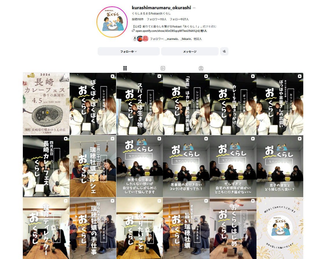 長崎県を拠点に「台所と生産者をもっと身近に」をテーマに活動する”くらしまるまる”は、新たに、地域のクリエイターや生産者の声を届けるポッドキャスト番組 「おくらし」 をスタートしました。 これまでイベントや企画を通して築いてきた“創り手とのつながり”を、音声メディアとInstagramという新しい形で広く発信し、長崎の魅力を国内外へ届けていきます。