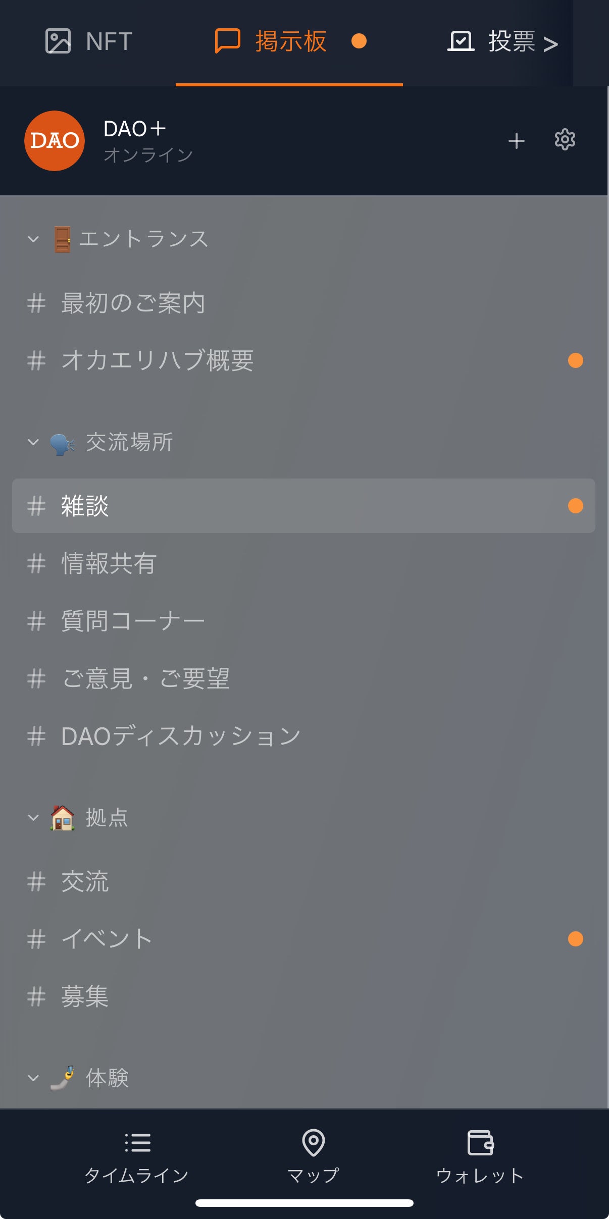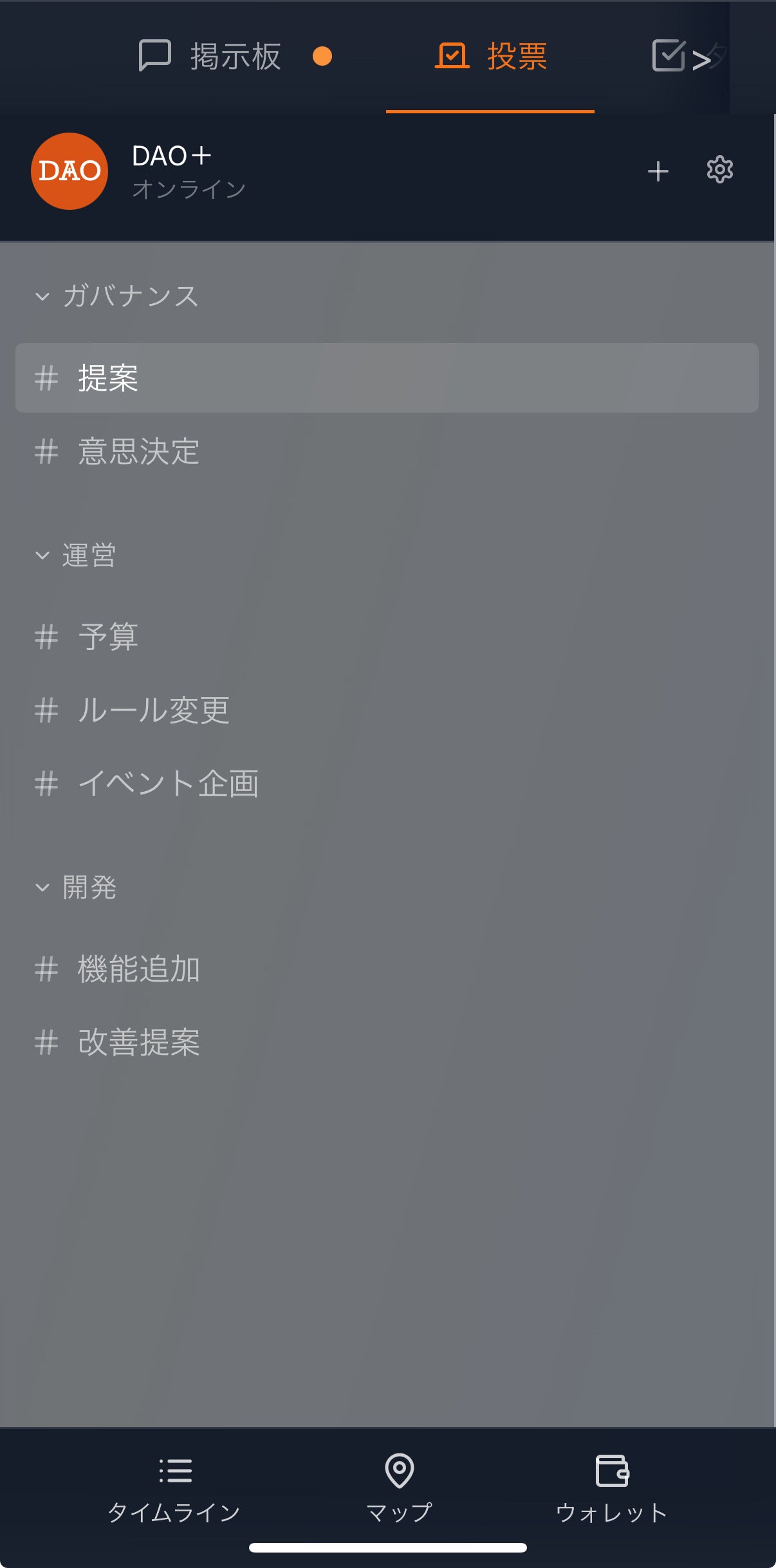 『DAO+』は、DAOへの参加にあたり完全招待制で、コミュニティ運営における「誰が、どれだけ、どのように貢献したか」を可視化し、公平なリワード分配を支援します。メンバー管理、投票・ガバナンス、トークン/NFTの発行・付与、掲示板、タスク/プロジェクトの進捗管理、イベント、募集、ブログなどの機能を一体化し、拠点ごとの地域DAO運営を支えます。