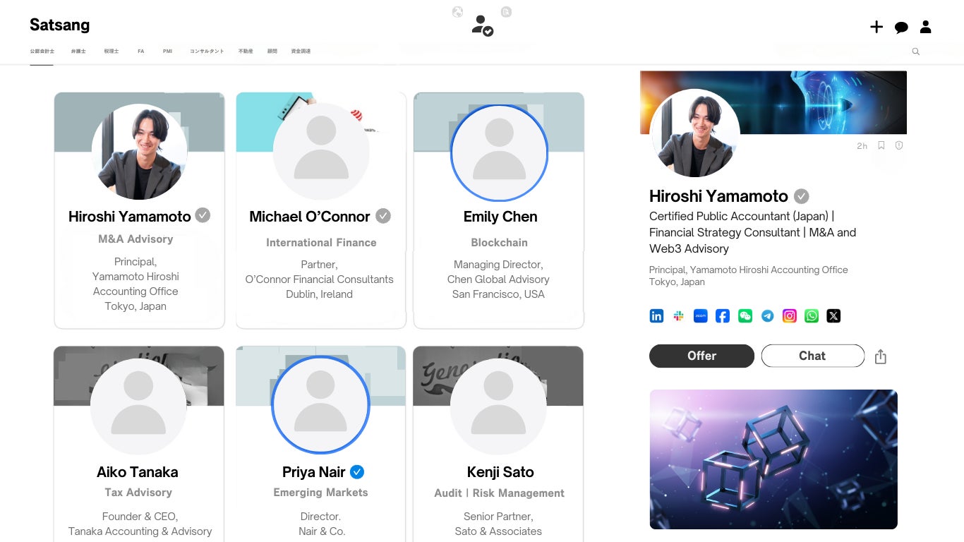 世界初、M&A・提携・資金調達など企業間取引を仲介なし・P2Pで実現。Web3型ディールプラットフォーム「Satsang」先行公開。
