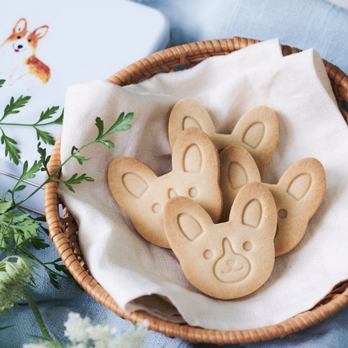 北海道産のこだわり素材を使用した、甘さ控えめでサクサク食感のクッキー。コーギーの顔をかたどったクッキーがぎっしり詰まった缶は、見た目もかわいらしく、ギフトにもおすすめです。