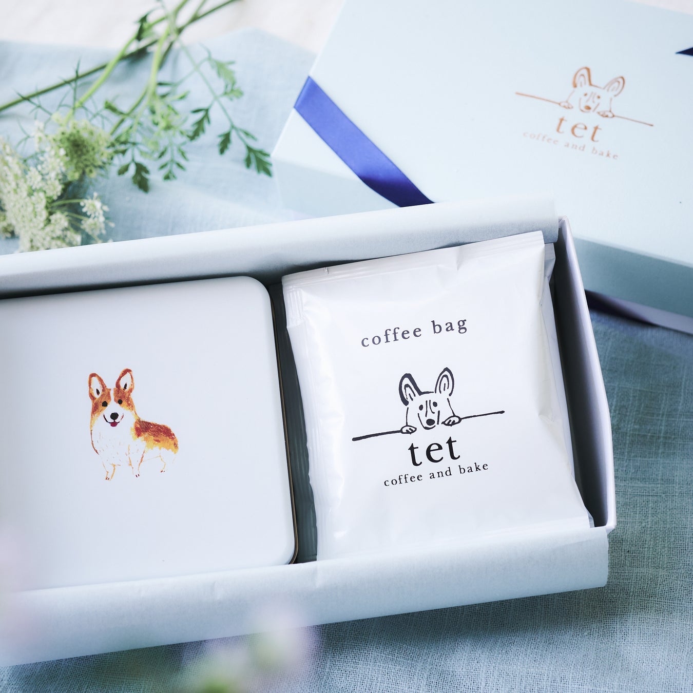 テッテ コーヒーアンドベイクの人気商品を詰め合わせたギフトセット。オリジナルブレンドのコーヒーとクッキー缶のセットが特に人気です。ロゴの箔押しが光るボックスは、特別な日や贈り物にぴったりの華やかさ。