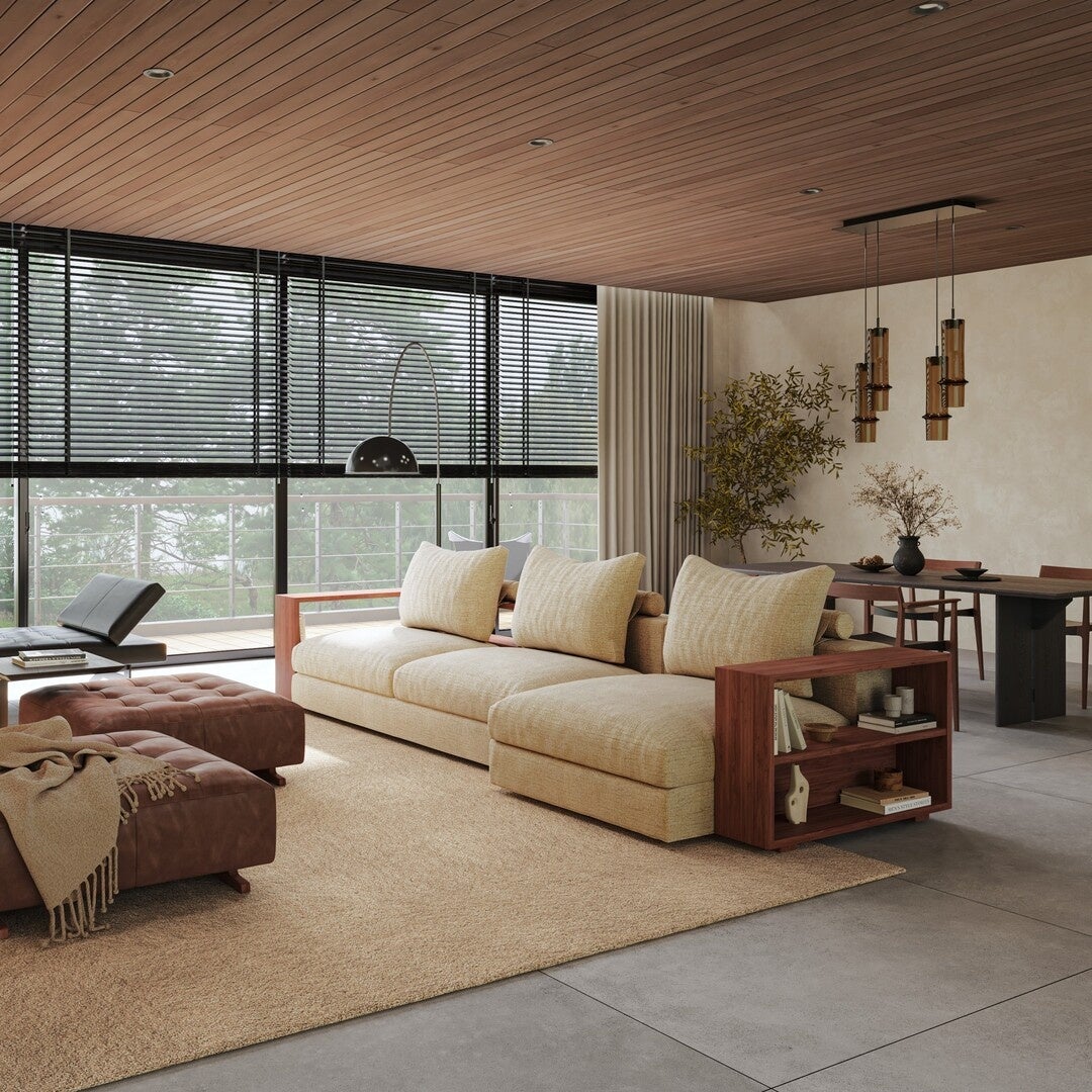 柔らかな包容力と静かな佇まい。ダウンフェザーのクッションに身をあずければ、時間は緩やかにほどけていく。お気に入りの本を開くひととき。傍らの木棚には、次の出会いを待つ一冊がそっと控えている。気づけば夜が明けるまで過ごしてしまう。そんな特別な居場所。