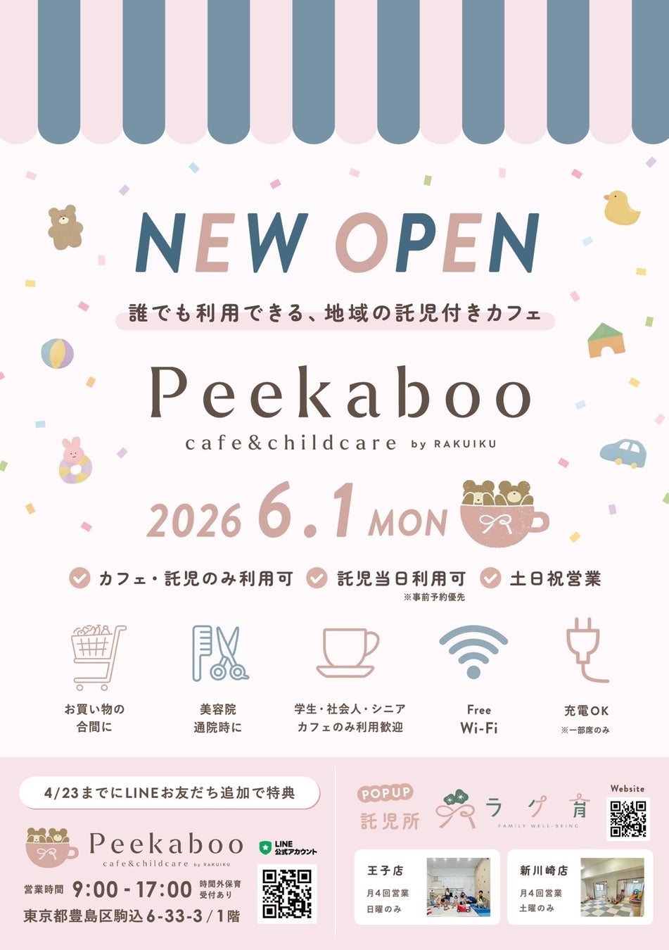 2026年6月、東京都豊島区に待望の「託児所カフェ Peekaboo」がオープン!!