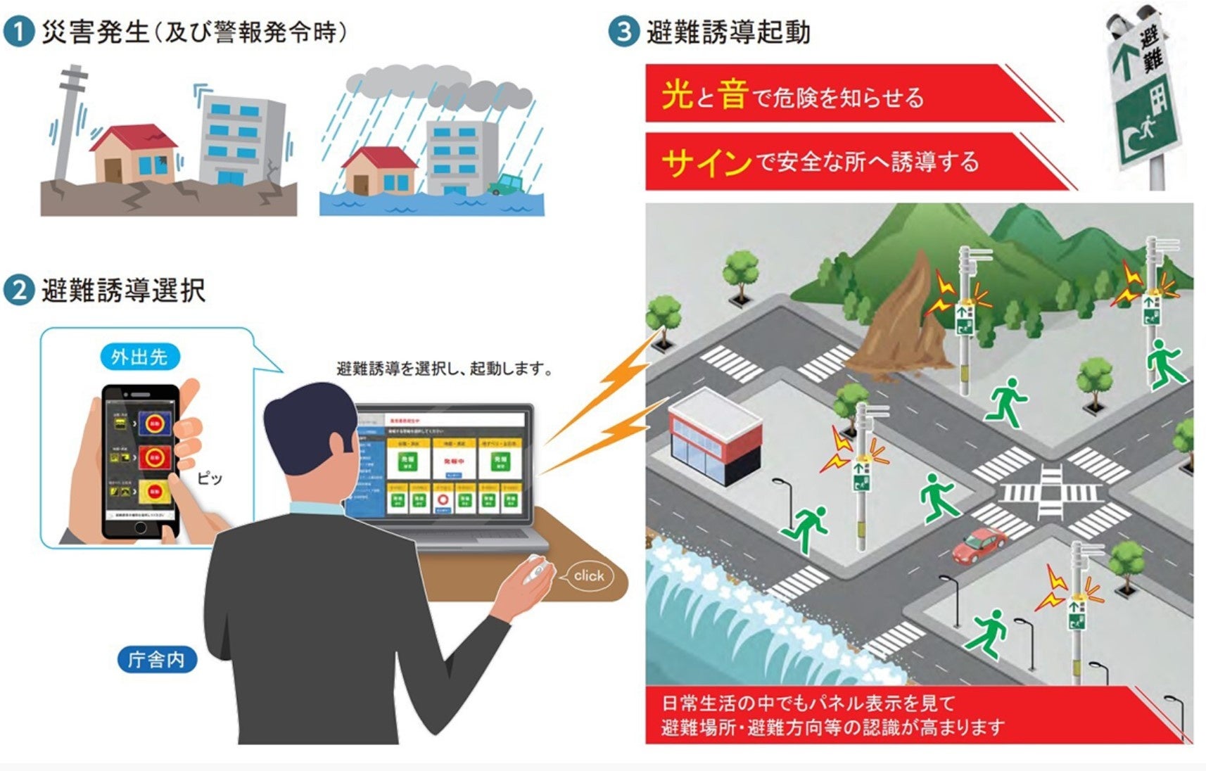 ~音と光による避難誘導看板で国内外の観光客と地域住民の安全確保に貢献~