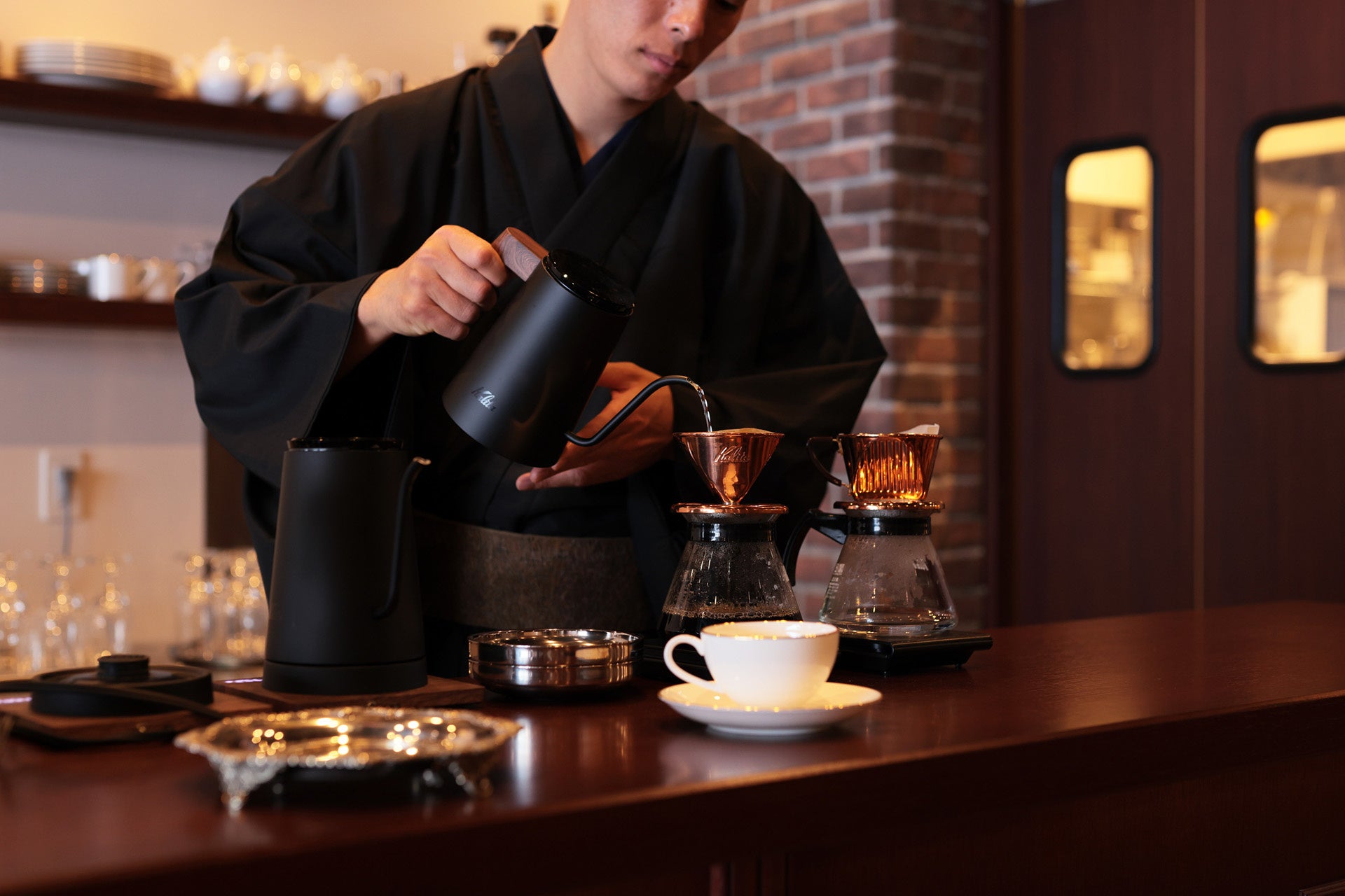 京都で自家焙煎した豆を丁寧にハンドドリップするオリジナルブレンド。メロンソーダや、奈良県産の和紅茶も人気です。カスタードプディングやフランスのメレンゲ菓子“ムラングシャンティ”、三層仕立てのコーヒーゼリーなどのスイーツも自慢。ハンバーグと半熟卵をトッピングした贅沢ナポリタンやサンドイッチなど、王道の味わいをお届けします。
