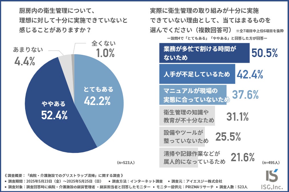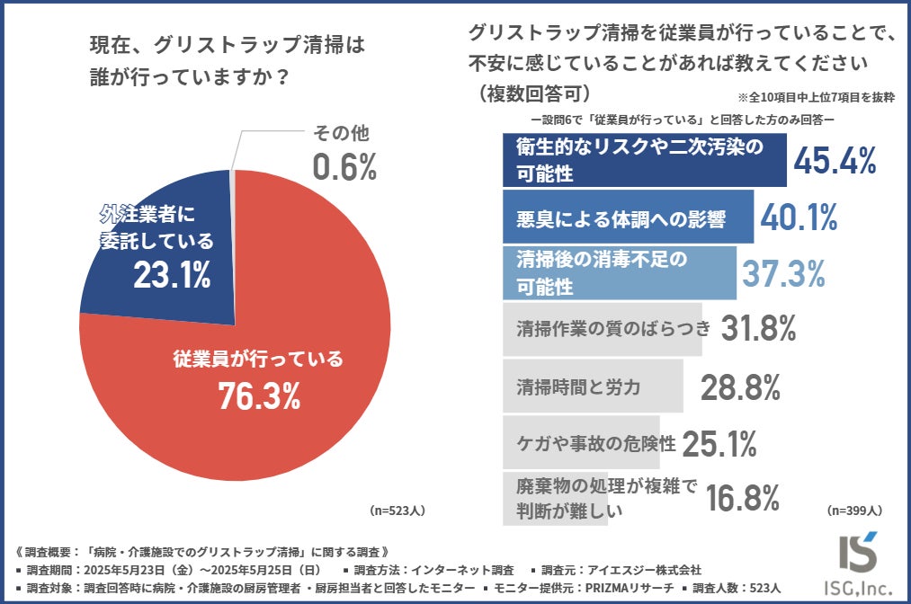 アイエスジー株式会社の環境事業部では、病院・介護施設の厨房管理者・厨房担当者を対象に、「病院・介護施設でのグリストラップ清掃」に関する調査を行いました。
