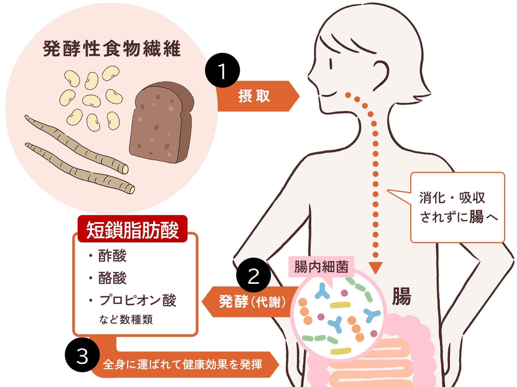 そんな中、山﨑先生も注目しているのが「発酵性食物繊維」。腸内細菌により発酵される発酵性食物繊維は、腸内の善玉菌のエサとなり、肌や体に良い影響を与える成分を生成します。腸内環境を整えるだけでなく、美容をサポートする働きが期待されるのです。腸活は、従来の「善玉菌を外から摂取する」時代でしたが、これからは腸内にいる常在菌に「良い働きをしてもらう」時代へ。腸内細菌たちに、美容や健康に良い成分を作り出してもらうことが、腸活の新しいアプローチと考えられます。