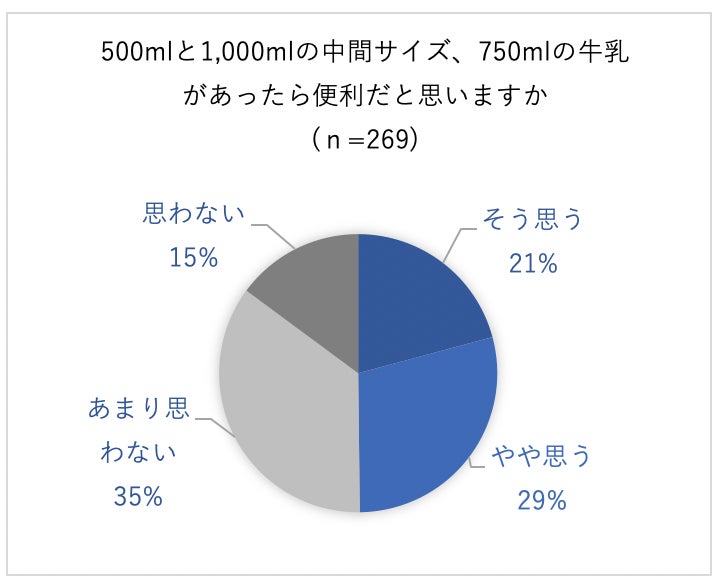 牛乳を捨てたことがある人の約半数は、500mlと1000mlの中間サイズである750mlの牛乳があったら便利だと思うと回答しました。