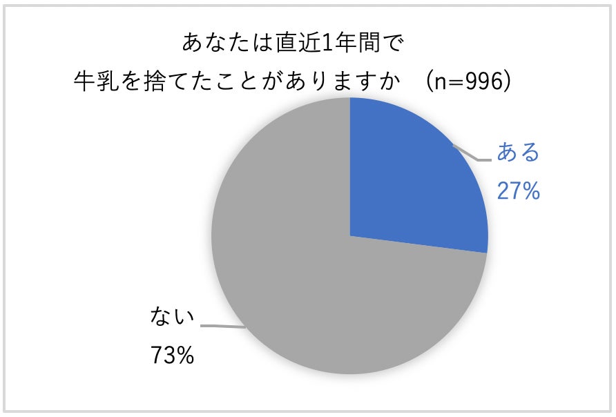 少人数世帯の約3割(27%)の人は牛乳を捨てたことがあると答えました。