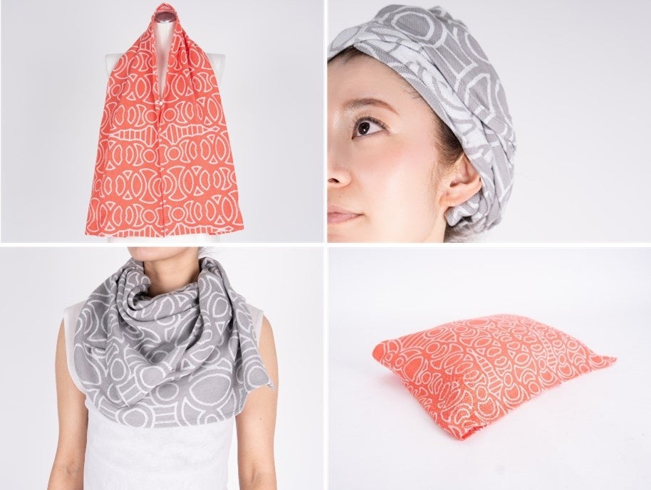 多機能タオル「bath stole(バスストール)」は、「有限から無限の可能性を引き出す」コンセプトのもと、円と直線の限られたモチーフから多様な図柄を生み出すアーティスト高橋理子氏のブランド、HIROCOLEDGEとのコラボ商品。