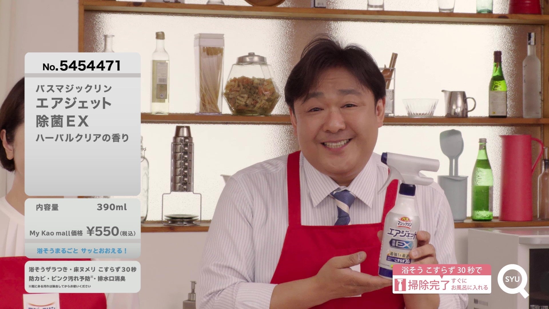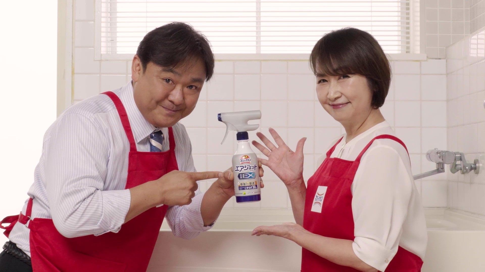 一方、「ゴシゴシはしません 通販番組」篇では、通販番組さながらのお二人のコミカルな掛け合いで「バスマジックリン エアジェット」シリーズを楽しく紹介します。忙しい毎日のお風呂掃除を「少しでもラクにしたい」という気持ちに寄り添いながら、ミストを「シューーーーーーッ」と吹きかけて30秒後に流すだけでキレイになる驚きをテンポよく表現しています。