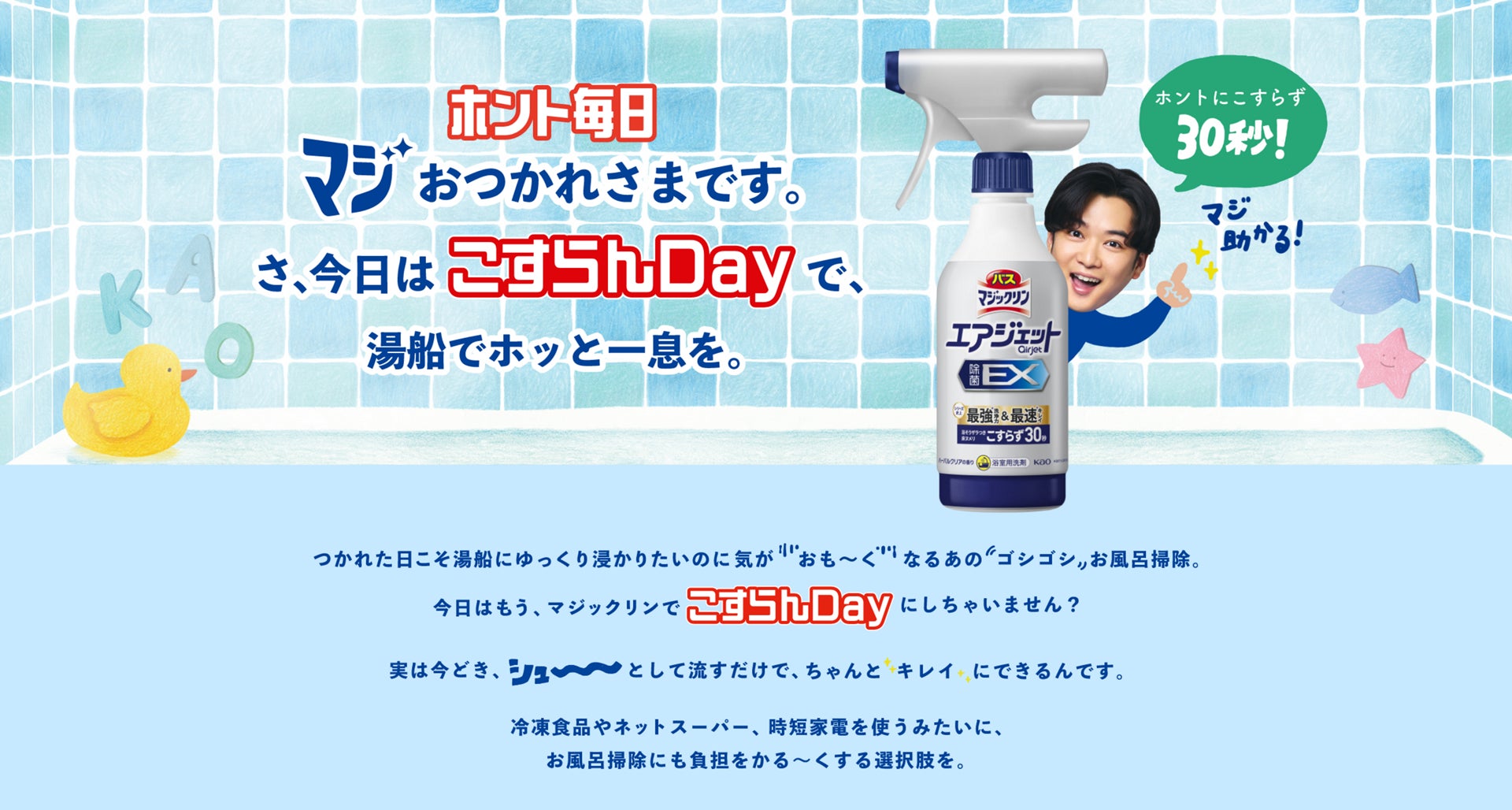 サイトURL:https://www.kao.co.jp/magiclean/rakukaji/#kosuranday
