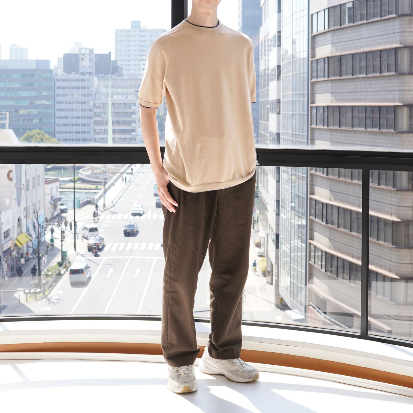 綿のしなやかさに機能性ポリエステルを複合した軽さとドライタッチが特徴のコンフォートヤーン「REMASTER CROSS」を使用したシリーズ。 紫外線、可視光線遮断セラミックを練り込んだ十字断面ポリエステルを使用することにより、紫外線から肌を守ってくれる効果も。太陽熱線を反射することで衣服内温度の上昇を抑えてくれる素材のため、春夏シーズンにぴったりのアイテムです。