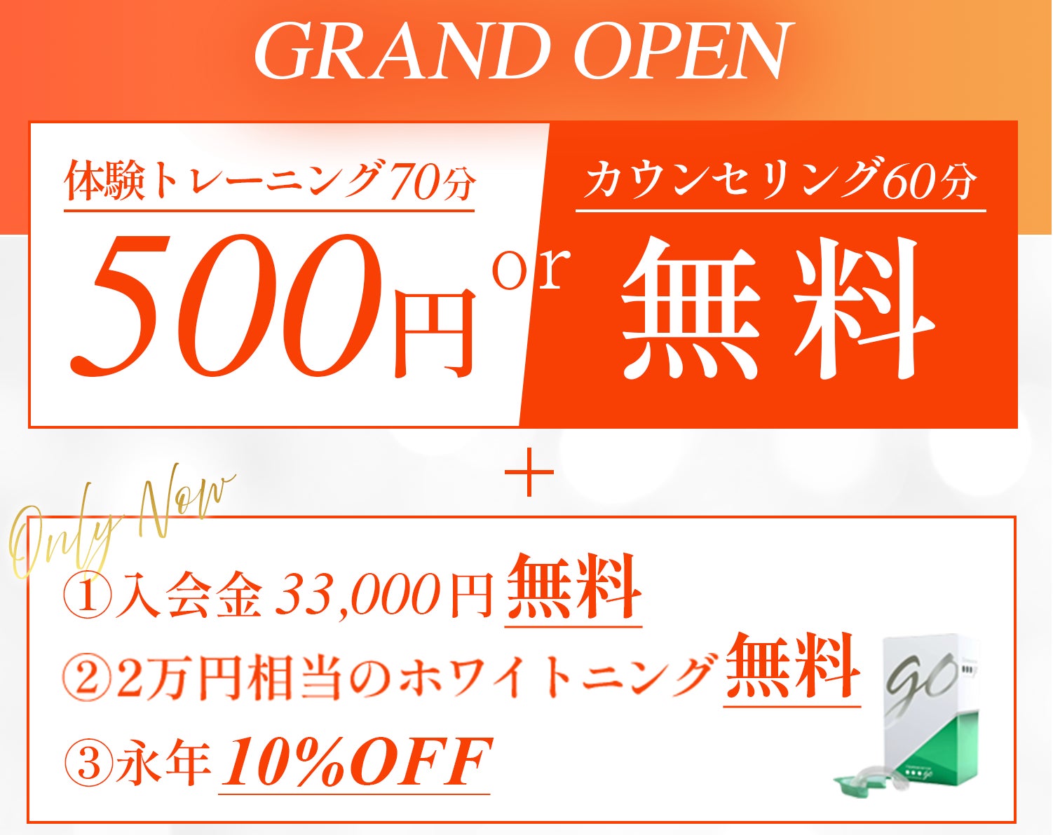 「無料カウンセリング」または「500円体験トレーニング」から気軽にお試し可能!