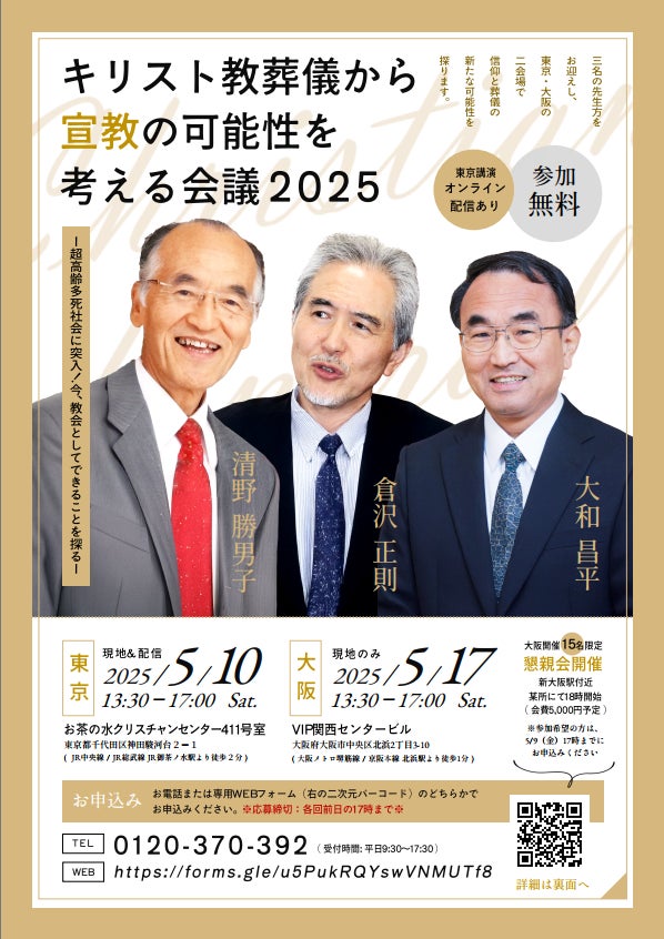 株式会社ライフワークス(本社:神奈川県鎌倉市、代表取締役 野田和裕)は、2025年5月10日(土)に東京、5月17日(土)に大阪にて、「キリスト教葬儀から宣教の可能性を考える会議2025」を開催いたします。