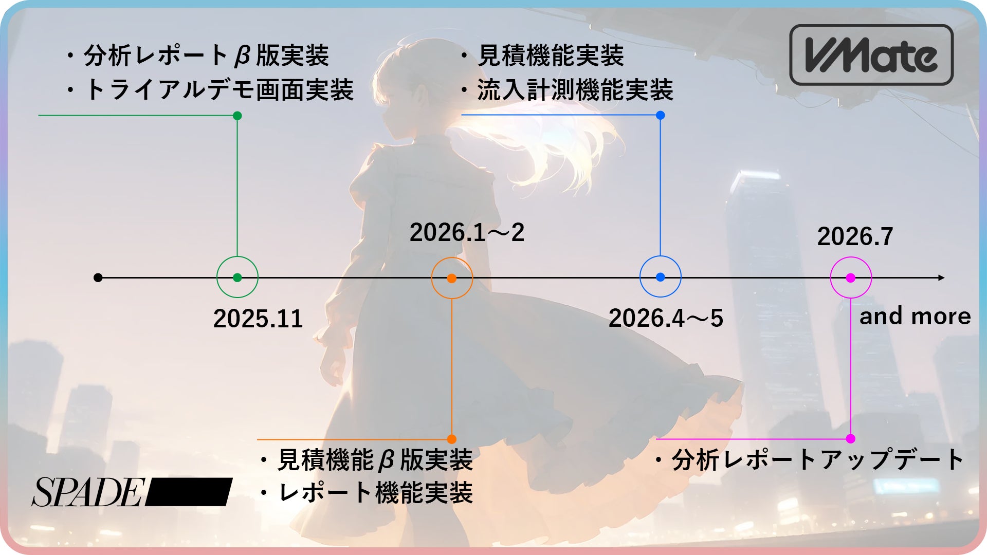 SPADE株式会社(本社:東京都台東区、代表取締役社長:大橋祐介)は、企業とVTuberを直接結びつけ、施策の効果分析までを一気通貫で支援するマッチングプラットフォーム「VMate」(ブイメイト, https://www.vmate.work/)を、2025年11月17日(月)00:00より正式にリリースいたしました。