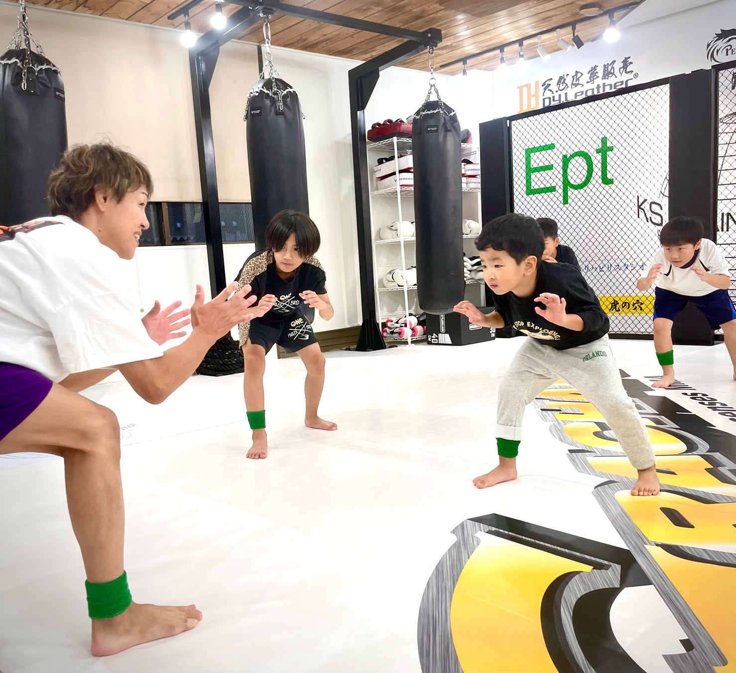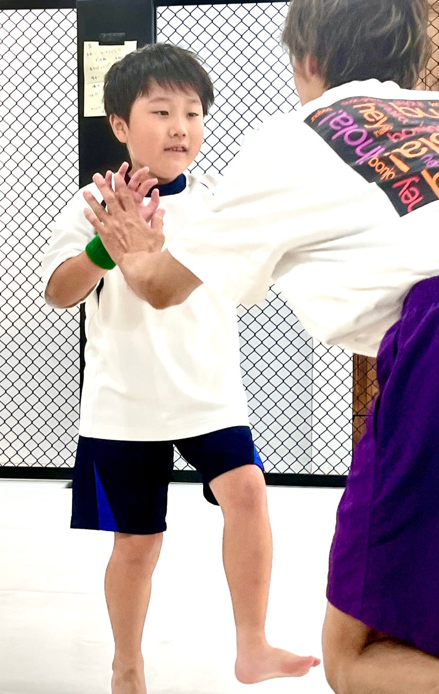 格闘技の技術を学ぶだけでなく、「正しい身体の使い方」「あきらめない気持ち」「仲間を思う心」「自分にまけない強さ」をキッズクラスで学んでほしいと考えております。