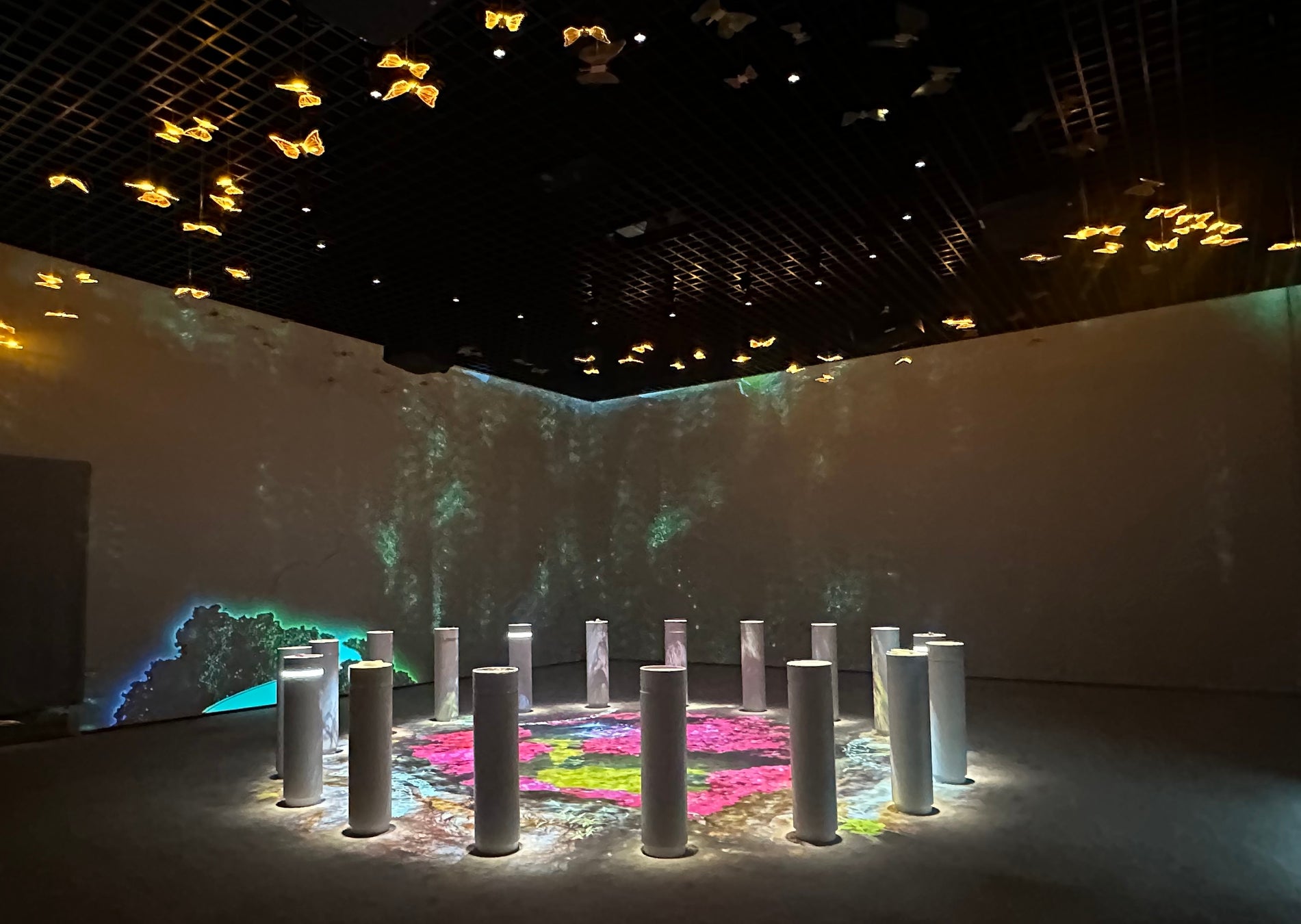 コロンビアパビリオンのテーマは「美を生きる国(The Country of Beauty)」。ノーベル賞作家ガブリエル・ガルシア=マルケスの代表作『百年の孤独』の幻想的リアリズムにインスピレーションを得た、没入型の空間演出で構成されています。パビリオン内では、黄色い蝶が来場者を案内し、コロンビアの多様な自然、文化、そして人々との出会いへと導きます。