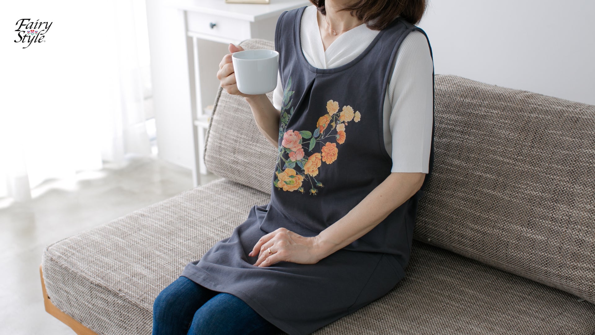 FairyStyle(フェアリースタイル)は、「永遠に咲き誇るお花を身にまとい、いつまでも明るく元気でいてほしい」という想いから生まれたレディースウェアブランドです。女性にとって身近で親しみのある「花」をモチーフにしたフラワープリントを中心に、エプロン、チュニック、ワンピース、Tシャツなどを展開しています。生地には、なめらかでシルクのような肌触りの綿100%素材を使用。着心地の良さと美しいシルエットにこだわり、日常のさまざまなシーンで快適に着用できるアイテムづくりを行っています。QVCテレビショッピングを中心に20年間継続販売されており、累計販売枚数は66万枚を突破。大人の女性を中心に、多くのお客様に支持されているブランドです。