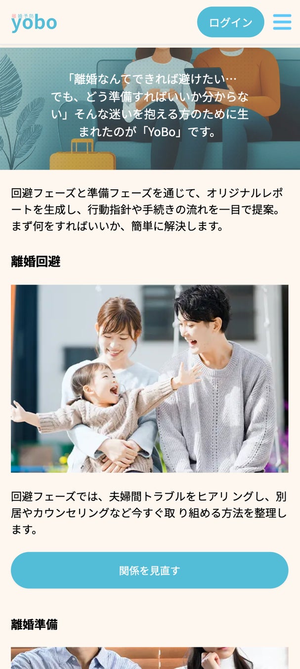 本サービスは、専門的な知識がなくてもスマホから簡単な質問に答えるだけで「自分のケースではどうなるのか」を具体的に知ることができる、今の時代に求められる“離婚のナビゲーションツール”です。