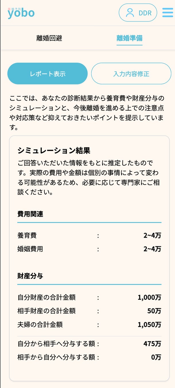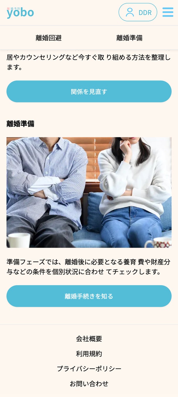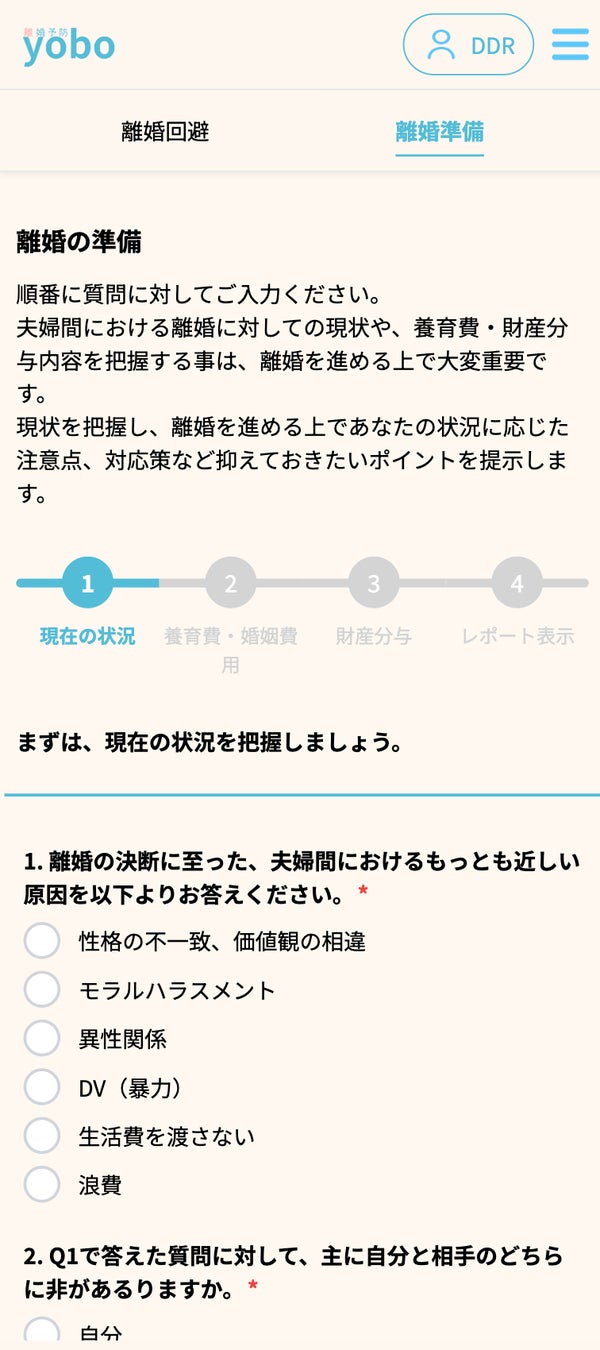 株式会社DDR(本社:東京都港区虎ノ門、代表取締役社長兼執行役員CEO:的場令紋)は、離婚にともなう養育費や財産分与、婚姻中の夫婦関係に潜むリスクを可視化し、当事者が冷静かつ前向きな判断ができるように支援する無料Webサービス「離婚yobo(ヨボウ)」を正式リリースしました。