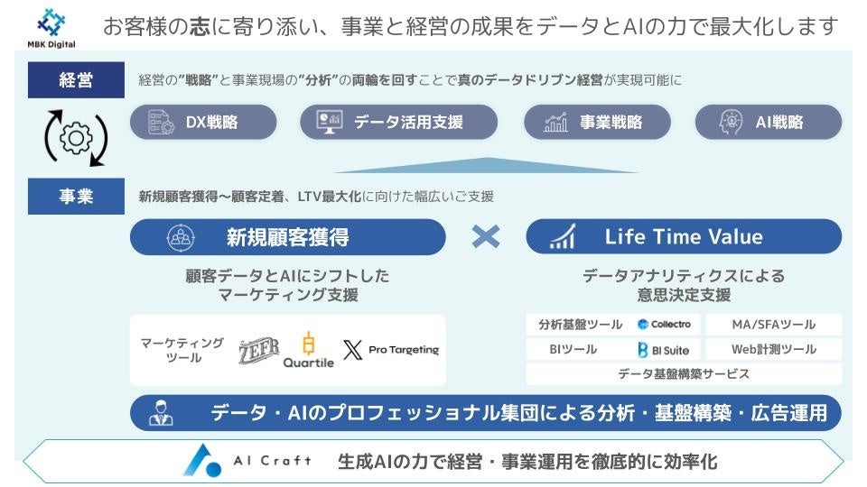 MBKデジタルはこうした状況を変えるべく、単なるデータ分析支援にとどまらず、顧客起点のマーケティング・CRM戦略を根本から再定義し、企業が本質的なデータ活用を“自走”できる仕組みづくりに取り組んでいます。