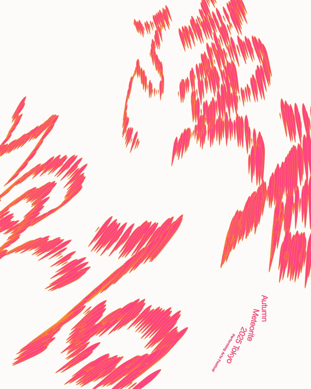 「秋の隕石2025東京」のビジュアルデザインは、このジェネレーターを用いることで、そのメディア(媒体)や機会等によって常に変化します。この変化するVIという概念を、我々は「LIVE VI」と称し、ビジュアル面からもこの芸術祭のコンセプトを表現します。