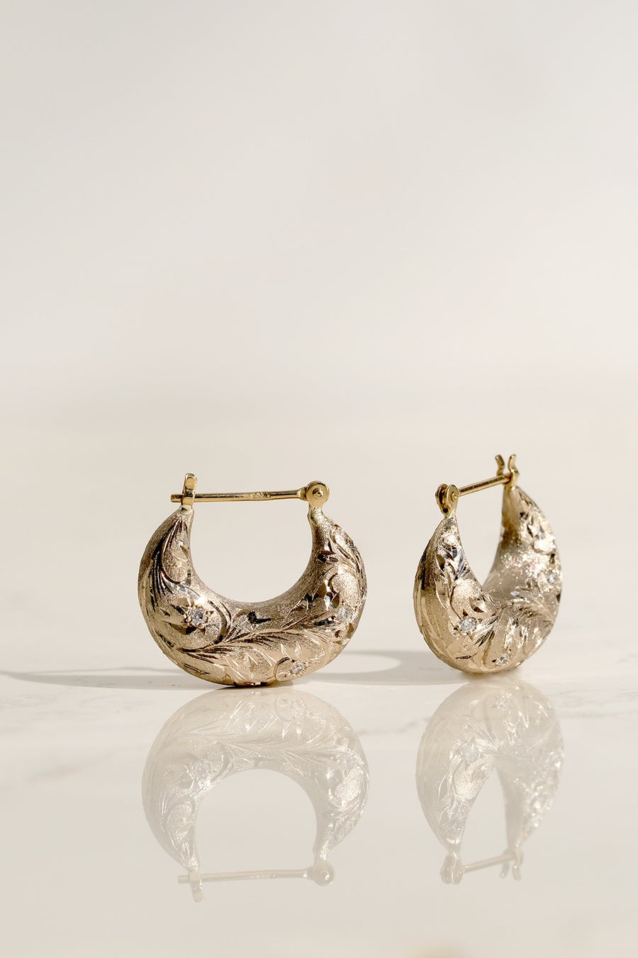 SIXTH NIGHTの特徴的な技法のひとつである「和彫り」。伝統的な日本工芸として受け継がれてきた技術と、それを支える職人に敬意を払い、共にこの文化を未来へと受け継ぐ一端を担いたいと考えています。伝統彫金技法と現代的なジュエリーデザインが調和する美の創造を追求します。