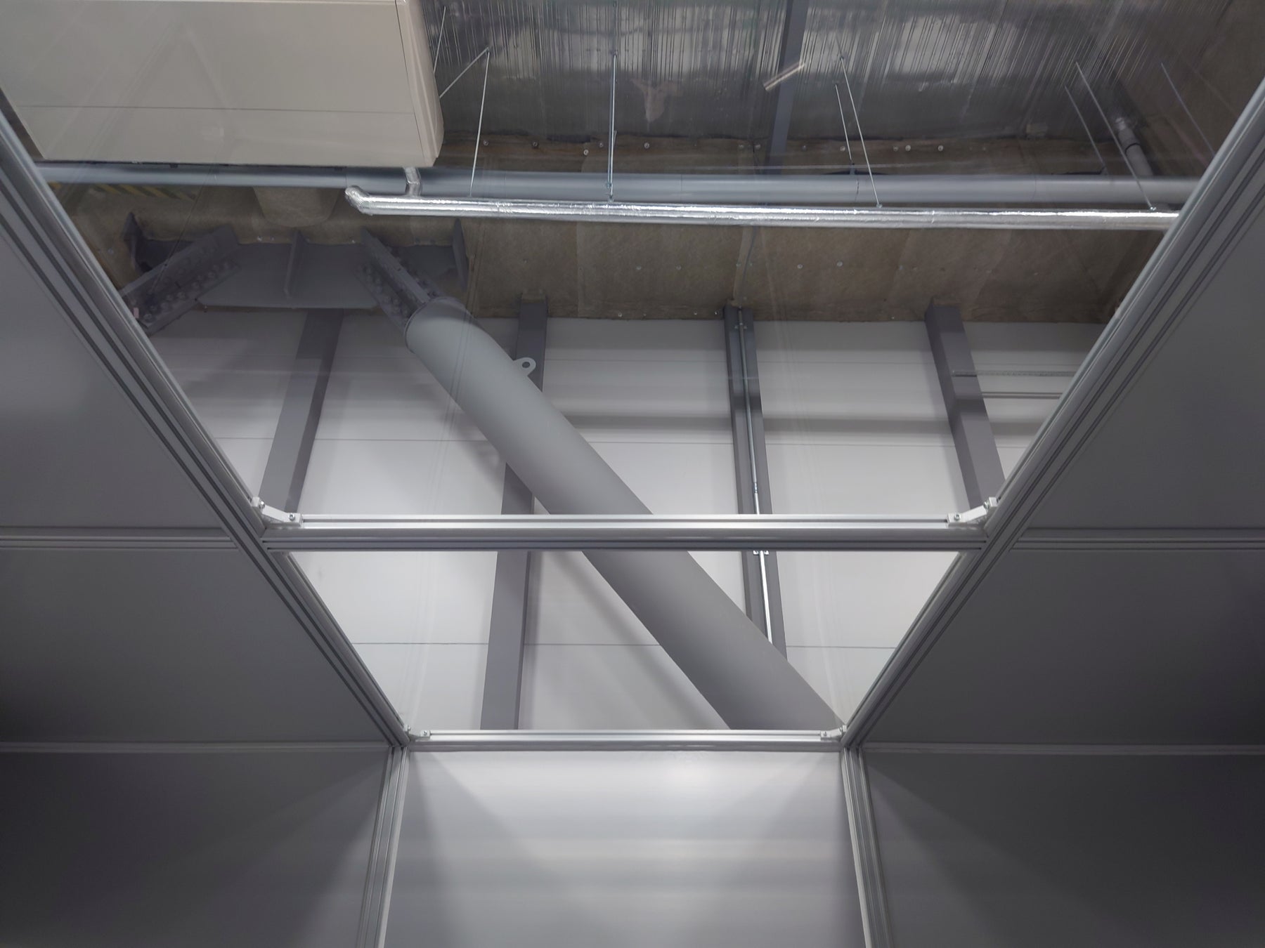 天井と側面に内部が見える「電磁波シールド付きパネル」を設置することで採光性を確保したほか、ゲート内部の見える化も実現しました。