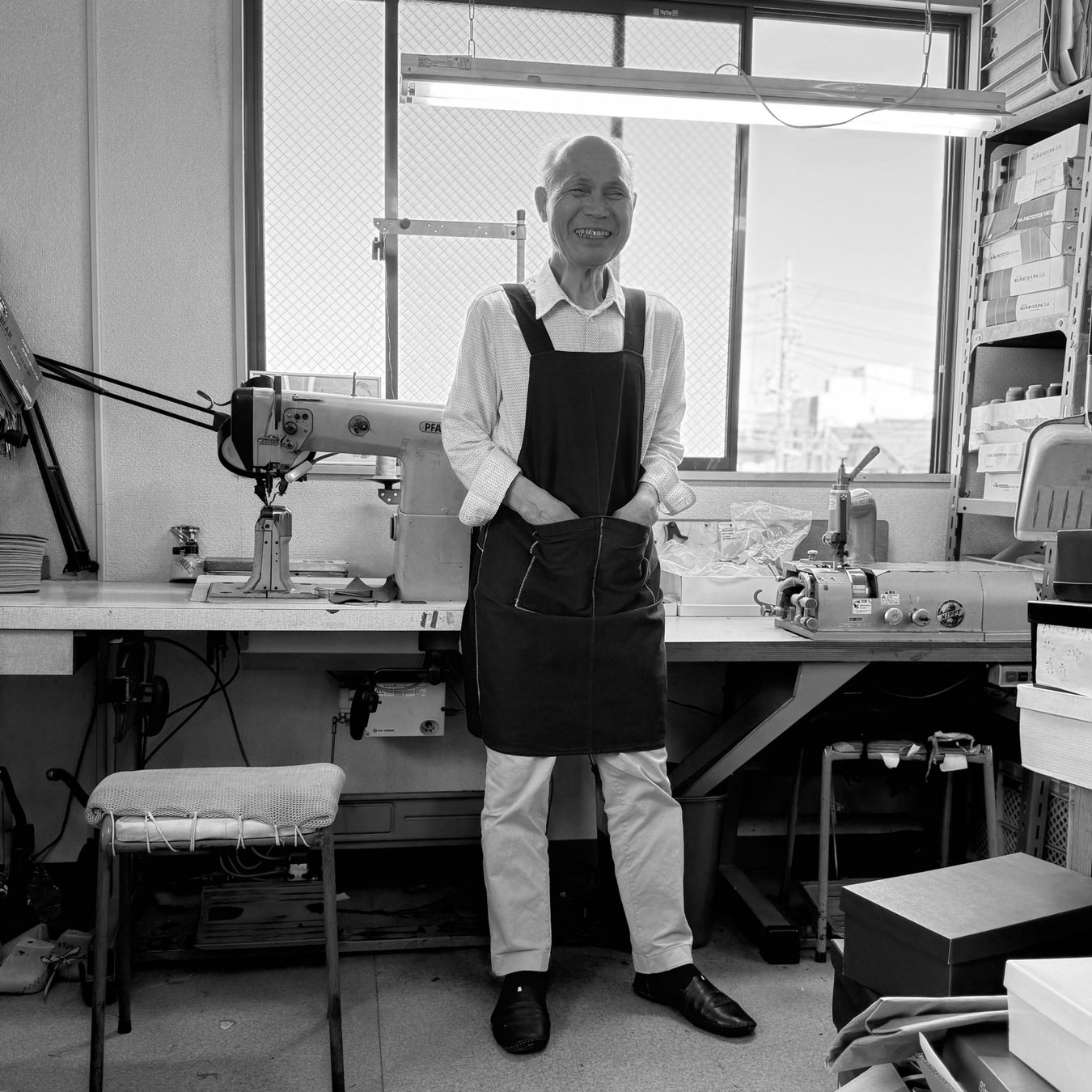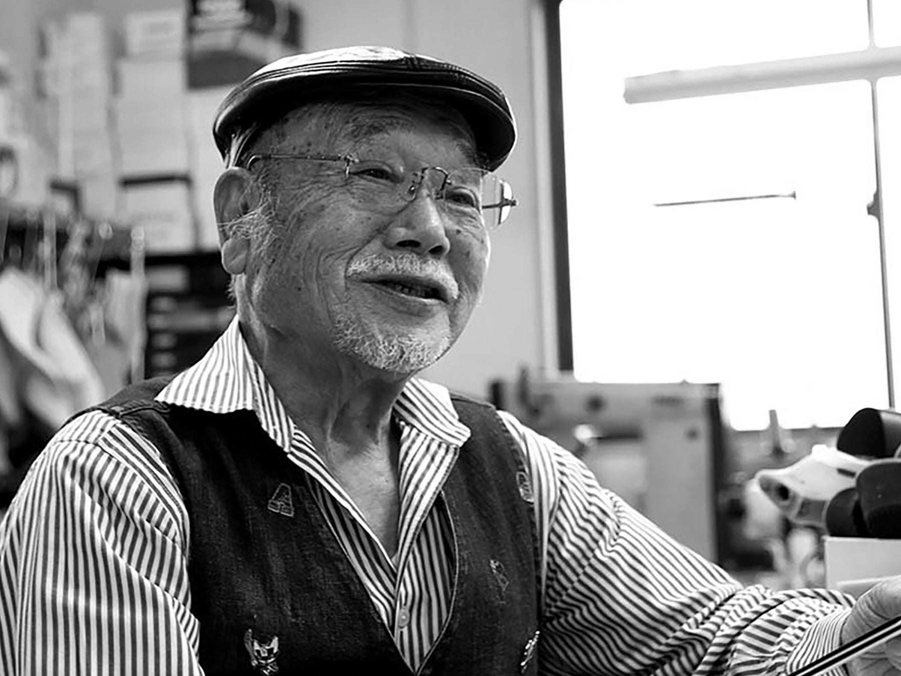 15歳で単身上京。当初は洋服の道を志していたものの、偶然の出会いから靴の世界へ。東京で丁稚奉公として5年間修行し、製甲の技術を基礎から身につけました。年季明けと同時に独立。家族を持ち、自らの手で道を切り拓いていきました。